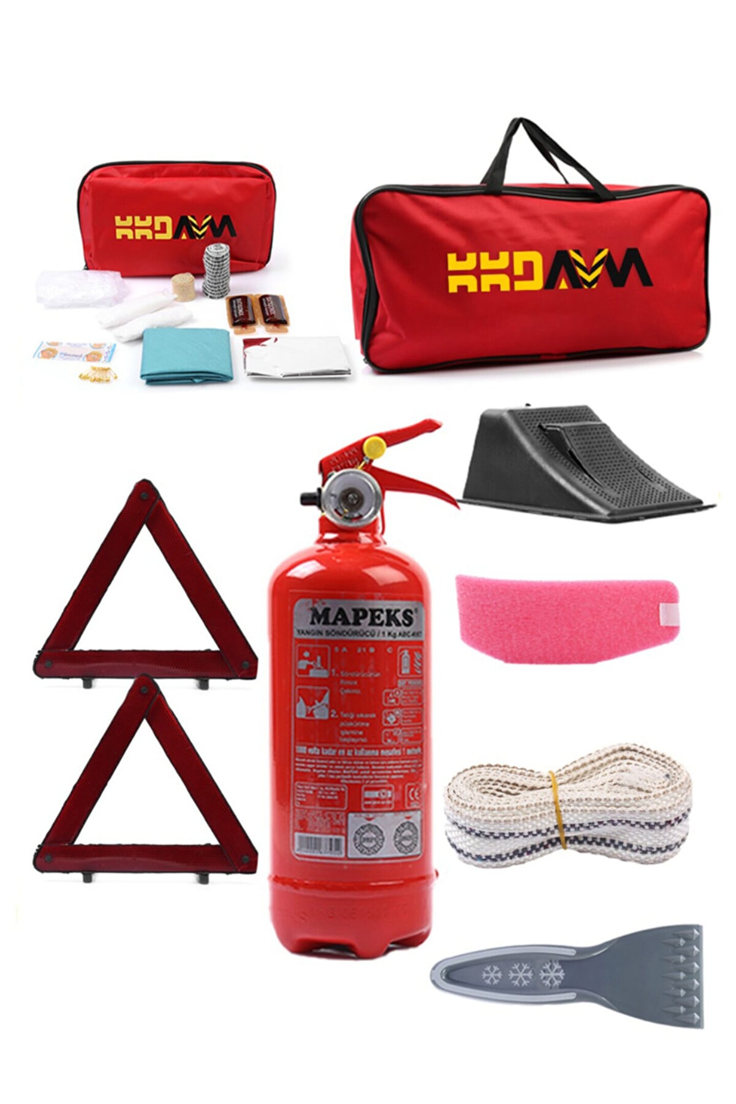 Dikdörtgen Trafik ve İlk Yardım Seti Çantası - Karayollarına Uygun Trafik Seti Toplamda 41 Parçadan Oluşan Trafik Setimiz Araçlarınızda Mutlaka Bulunması Gerekmektedir. ; Karayolları uyumlu Dikdörtgen trafik seti, içeriğinde yer alan bez çanta sayesinde kolayca taşıyabilmeniz için uygundur. ; Karayollarına uygun şekilde hazırlanmış olan bu ilk yardım çantası, trafikte yaşayabileceğiniz kazalarda kazazedelere ilk müdahaleyi hemen yapabilmenize olanak tanır. ; Trafik yönetmeliklerine uymak için aracınızda bulundurmak zorunda olduğunuz ilk yardım seti ile kazalarda alabileceğiniz yaralara karşı doğru müdahalelerde bulunabilmeniz kolaylaşır. ; Trafik Seti İçeriği 1 Adet Dikdörtgen Çanta 1 Kg Yangın Tüpü 2 Adet Plastik Ayaklı Reflektör 1 Adet Boyunluk 1 Adet Çekme Halatı Demirsiz 1 Adet Araç Kaydırmaz Takoz 1 Adet Buz Kıracağı 1 Adet İlk Yardım Çantası İlk Yardım Seti İçeriği 1 Adet İlk Yardım Örtüsü 5 Adet 7,5x7,5 cm Tek Kat Kompres 1 Adet Elastik Bandaj 1 Adet ilk yardım turnikesi 2 Adet 10x150 cm Hidrofil Sargı Bezi 1 Adet Makas 5 Adet Yarabandı 1 Adet İlk Yardım Yapıştırma Bandı 1 Adet Çift Eldiven 2 Adet Antiseptik Solisyon - Batiqonix 10 Adet Mini Çengelli İğne 2 Adet Üçgen Sargı Bezi;