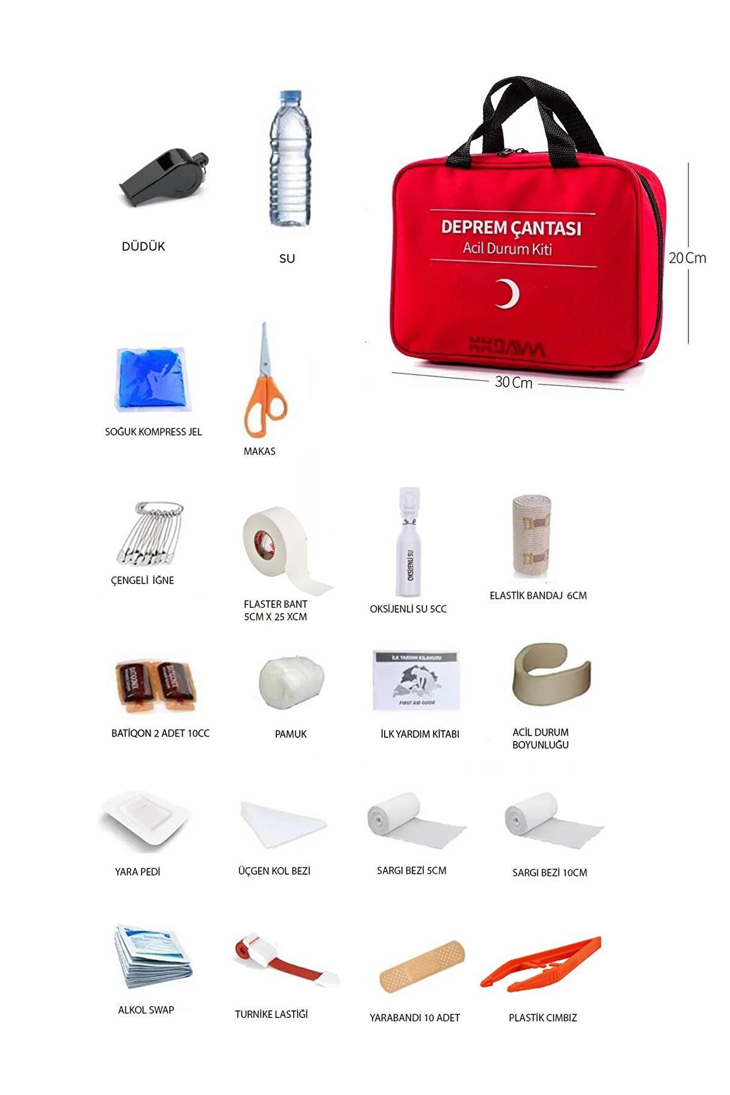 İlk Yardım Seti Ve Acil Müdahale Çantası Deprem, su baskını, yangın gibi doğal afetlerde kişilerin yaşam ihtiyaçlarını karşılayan ürünleri ve ilk yardım malzemelerini içeren bir settir.