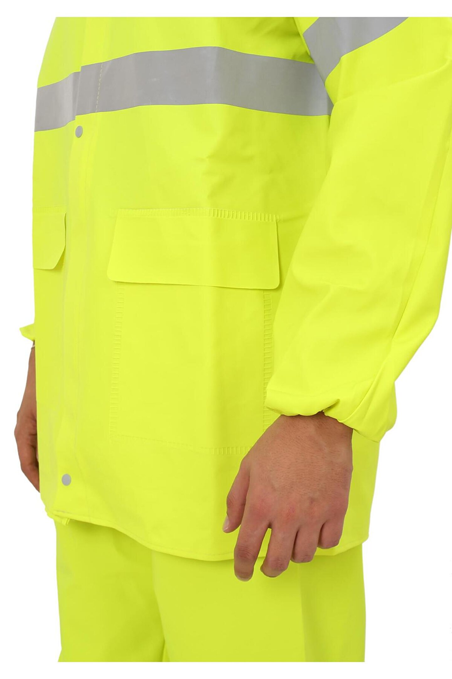 KKDAVM Yüksek Görünümlü Reflektörlü Dikişsiz Fermuarlı Yağmurluk Alt Üst Takım Pvc Su Geçirmez