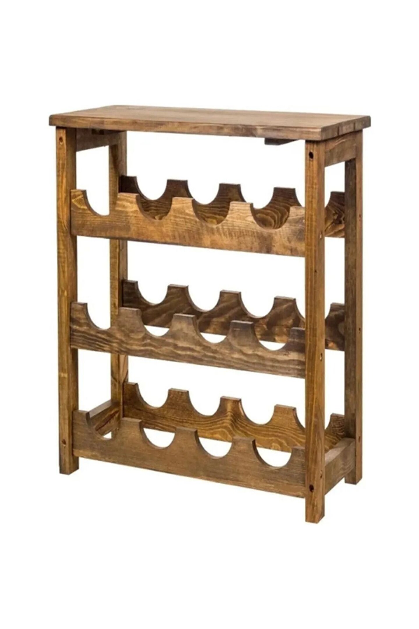 Ahşap Eskitme 3 Katlı Ve Şişelik Rafı Mini Bar Raf