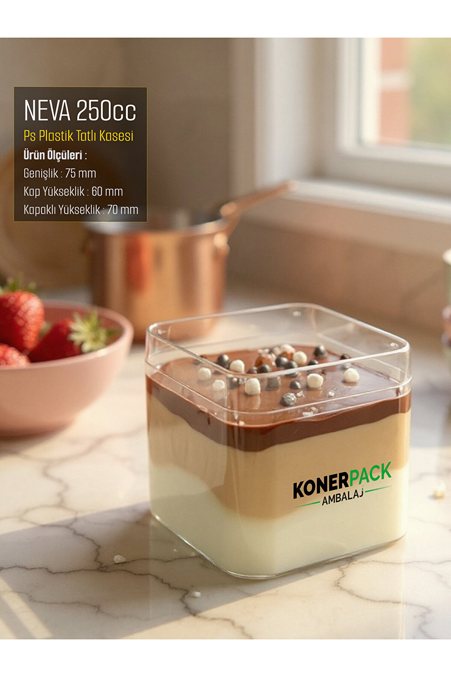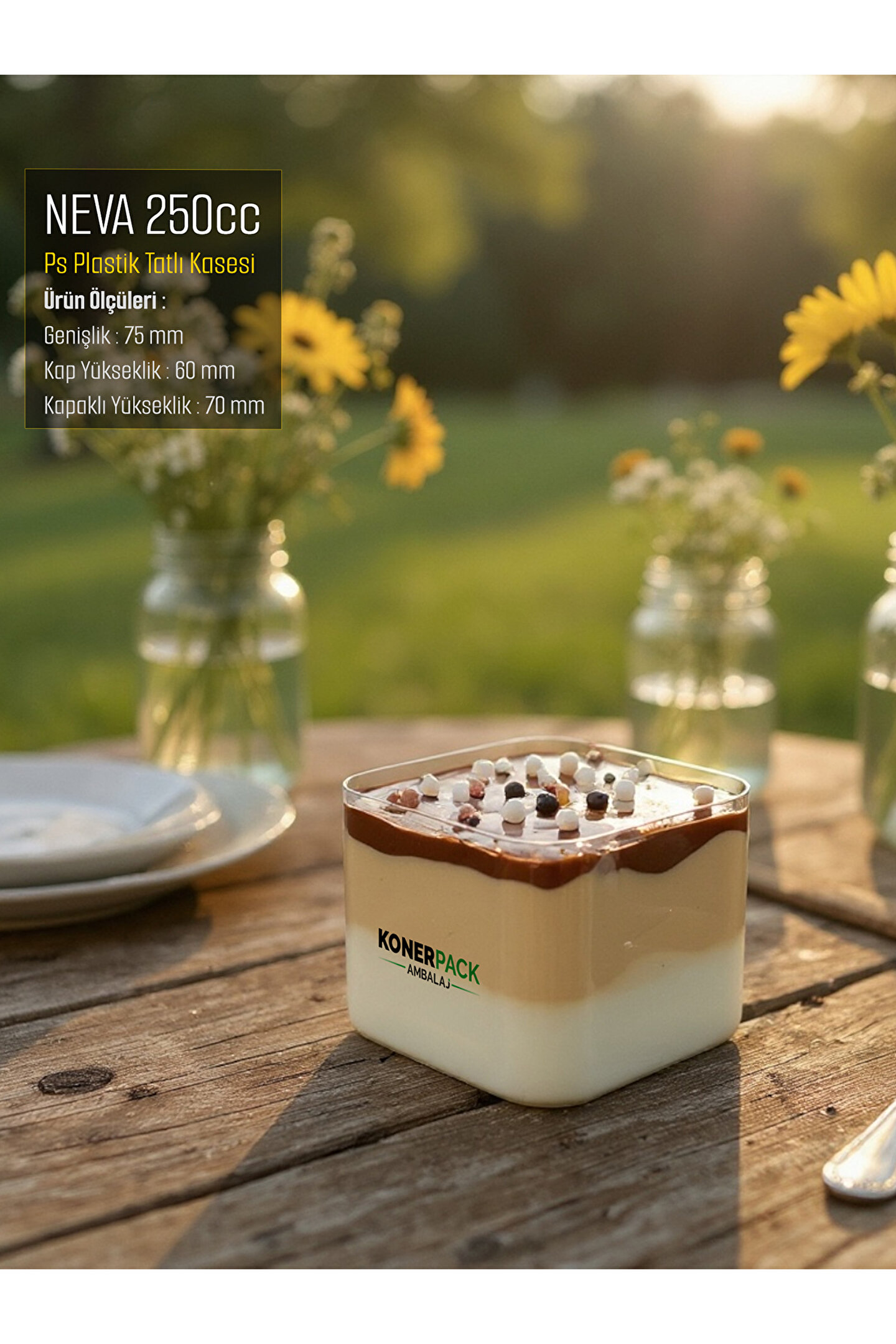 KONERPACK 48 Adet Kapaklı Şeffaf Renk Sert Plastik Magnolya Kasesi Sütlü Tatlı Kasesi