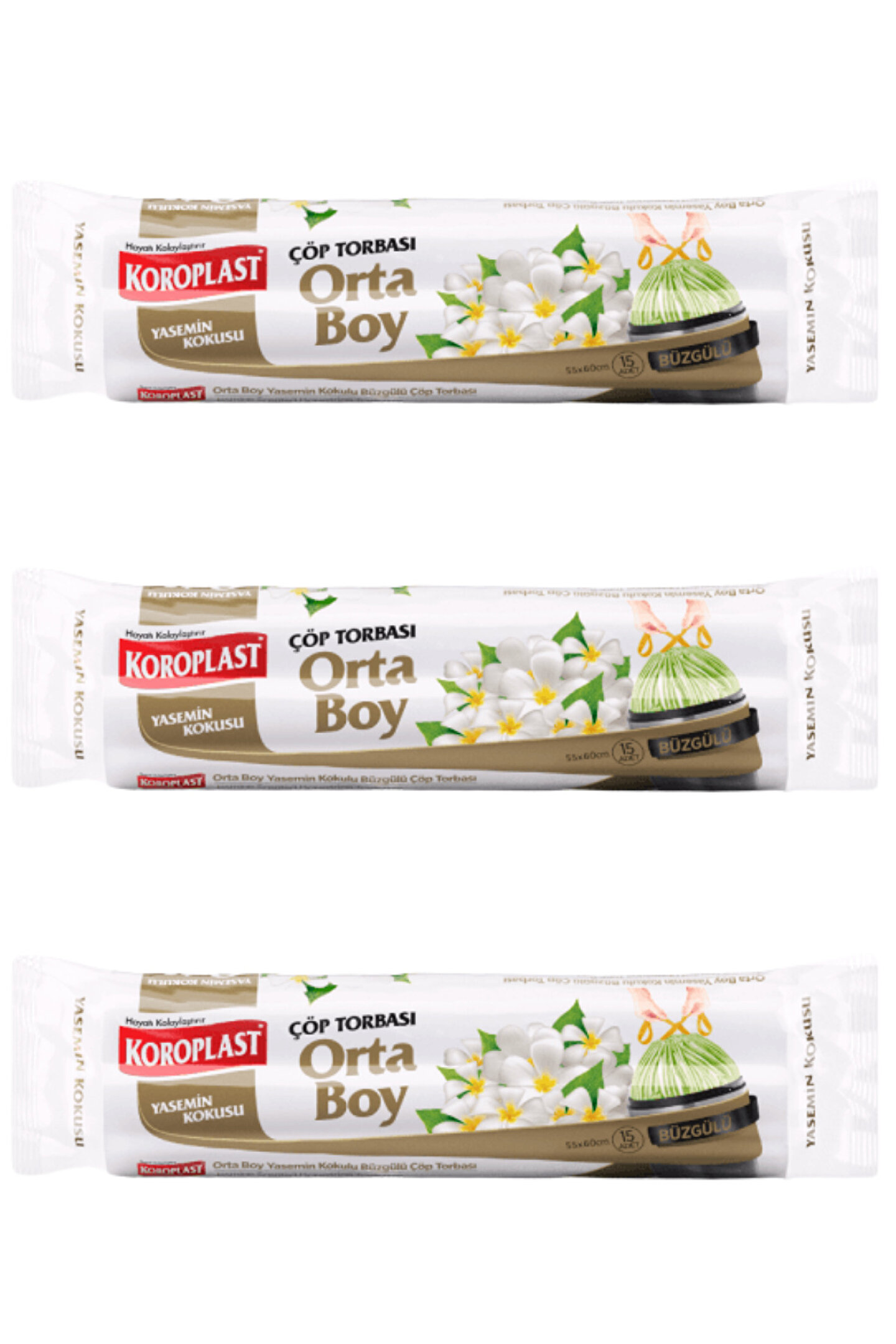 KOROPLAST Yasemin Kokulu, Büzgülü Orta Boy Çöp Torbası 15li X3
