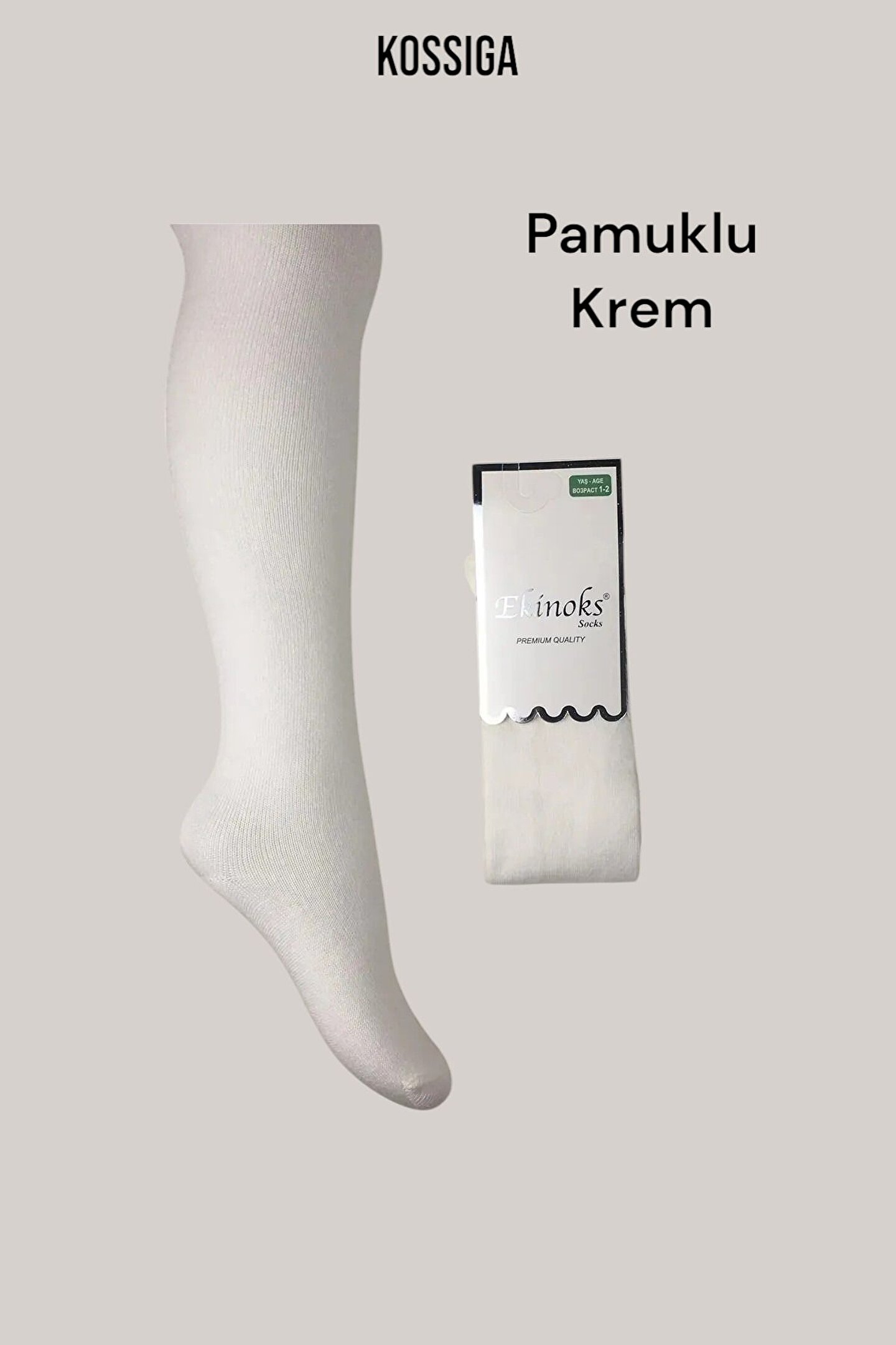 Unisex Krem Renk Külotlu Çorap Pamuklu Çorap