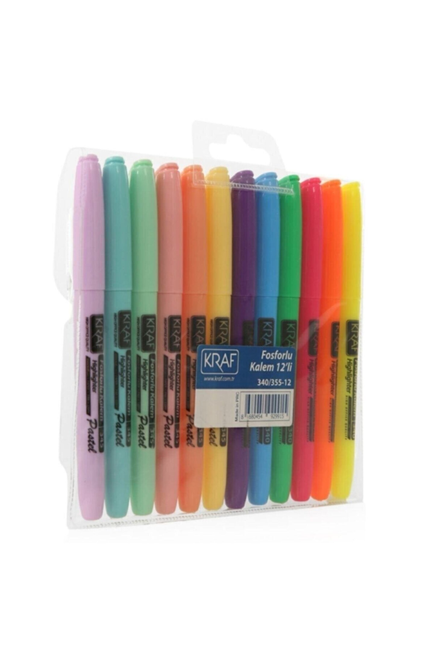 KRAF Kalem Tipi Fosforlu Işaretleme Kalemi Seti 12 Renk Pastel Ve Canlı Renkler
