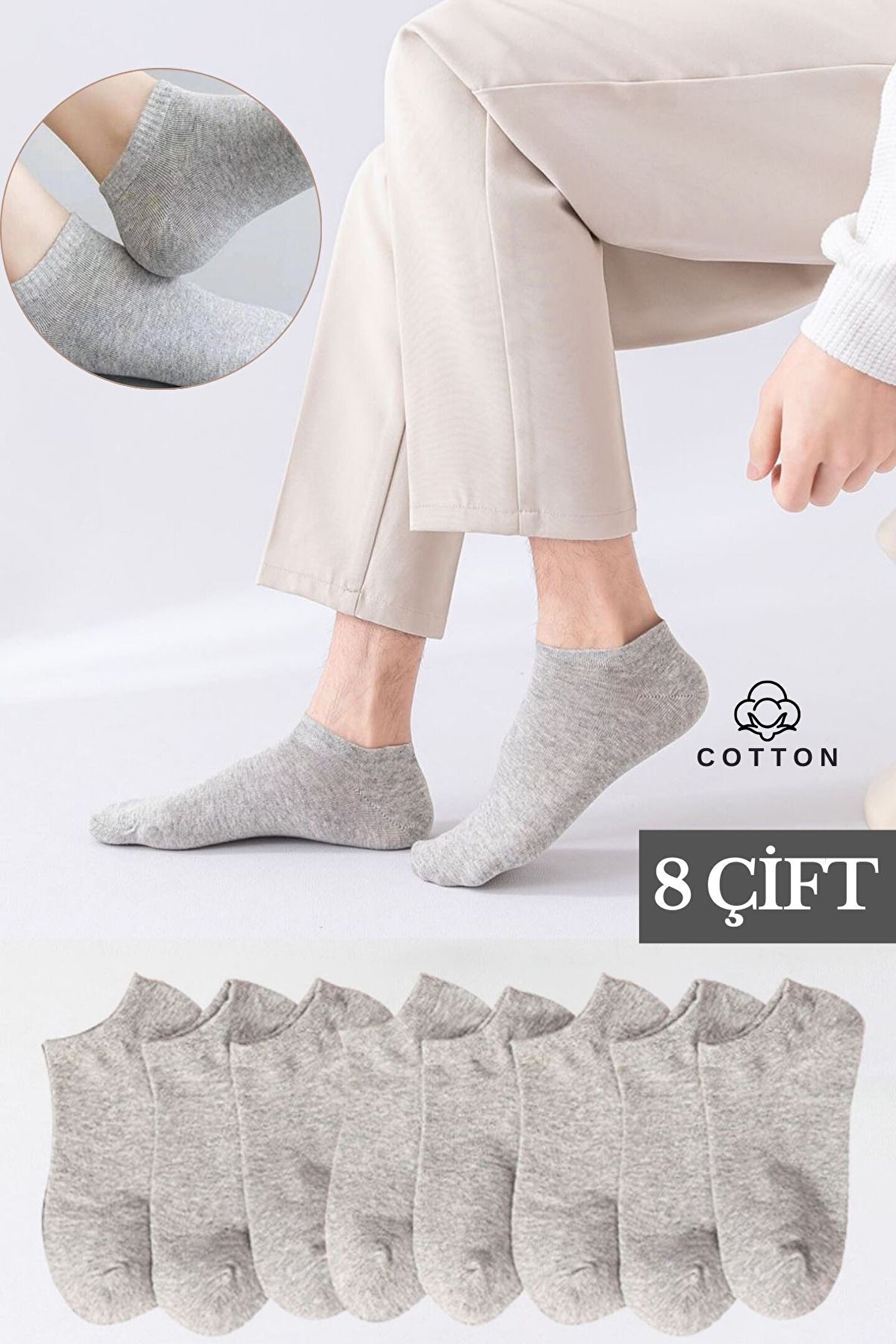 Basic Cotton Pamuk Erkek Soket Çorap 40-44 Gri