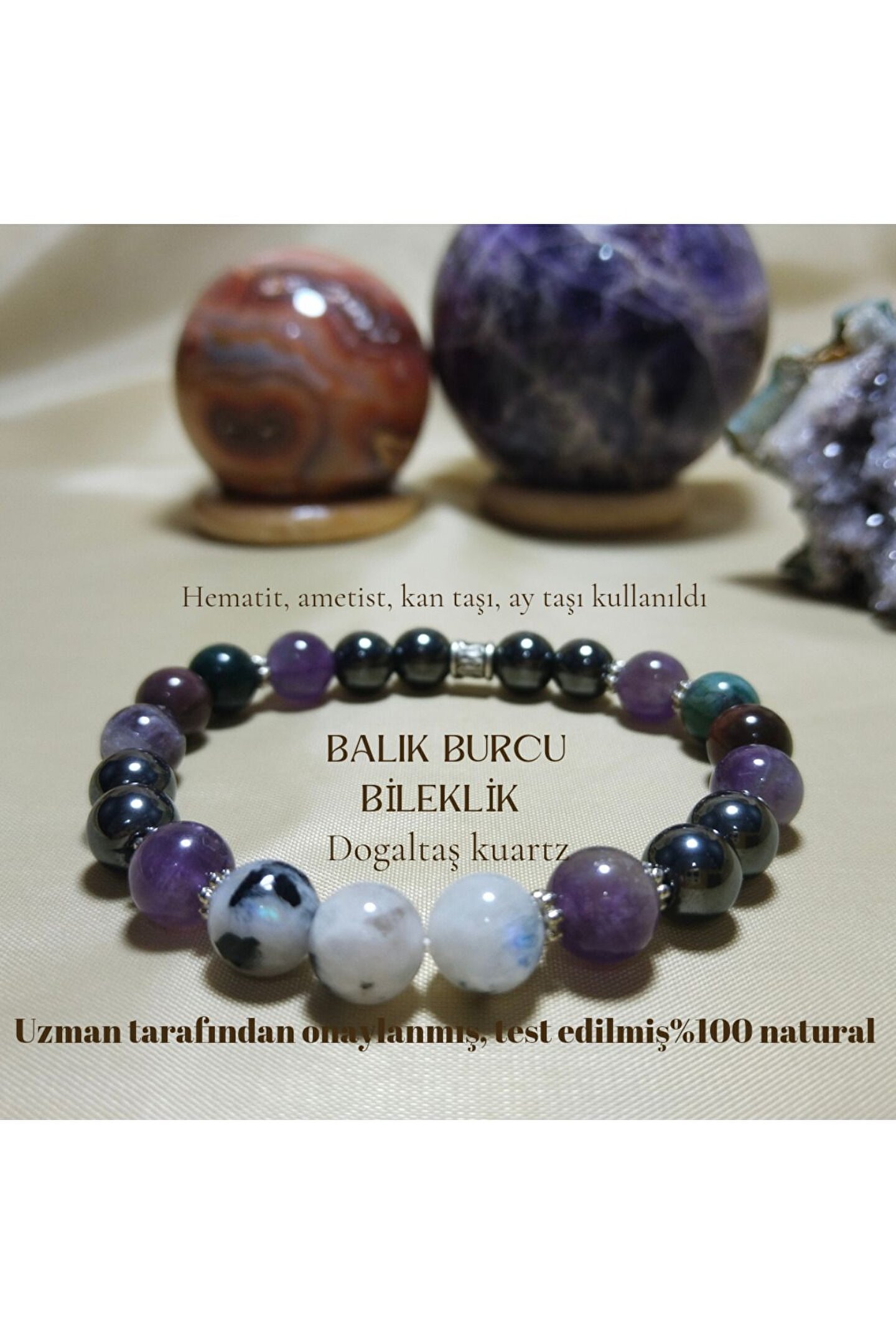 Balık burcu bileklik, özel tasarımıyla dikkat çeker ve şıklığınızı tamamlar; Uzman tarafından onaylanmış test edilmiş yapısıyla kalite ve güven sunar; Kaplama materyali sayesinde uzun ömürlü kullanım vaat eder; Doğal taş kullanımı, her bilekliğe benzersiz bir dokunuş katar ve doğallığı hissettirir;