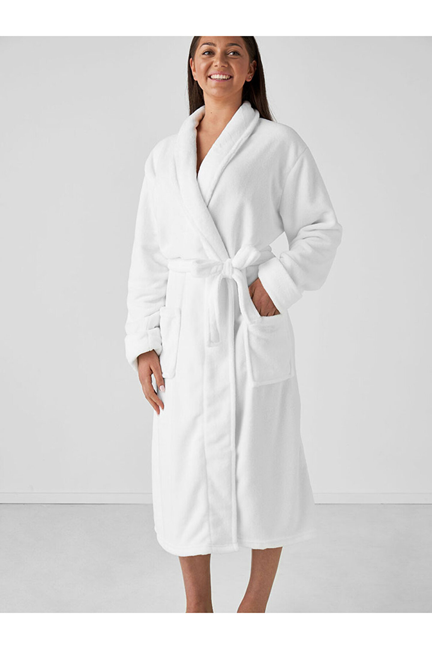 Tek parça halinde gelen bu bornoz, minimalist ve şık bir görünüm için düz desen tasarımına sahiptir; - Pratik kullanım için tasarlanmış cepli yapısı, kişisel eşyalarınızı yanınızda taşımanız için idealdir; - Tekil ürün olarak sunulan bu beyaz bornoz, bireysel ihtiyaçlarınıza özel bir seçimdir; - Pamuk materyali sayesinde hafif ve nefes alabilen yapısıyla rahat bir deneyim sunar; - Maxi boyu ile vücudu tamamen sararak sıcak tutar ve rahat hareket etme özgürlüğü sağlar;