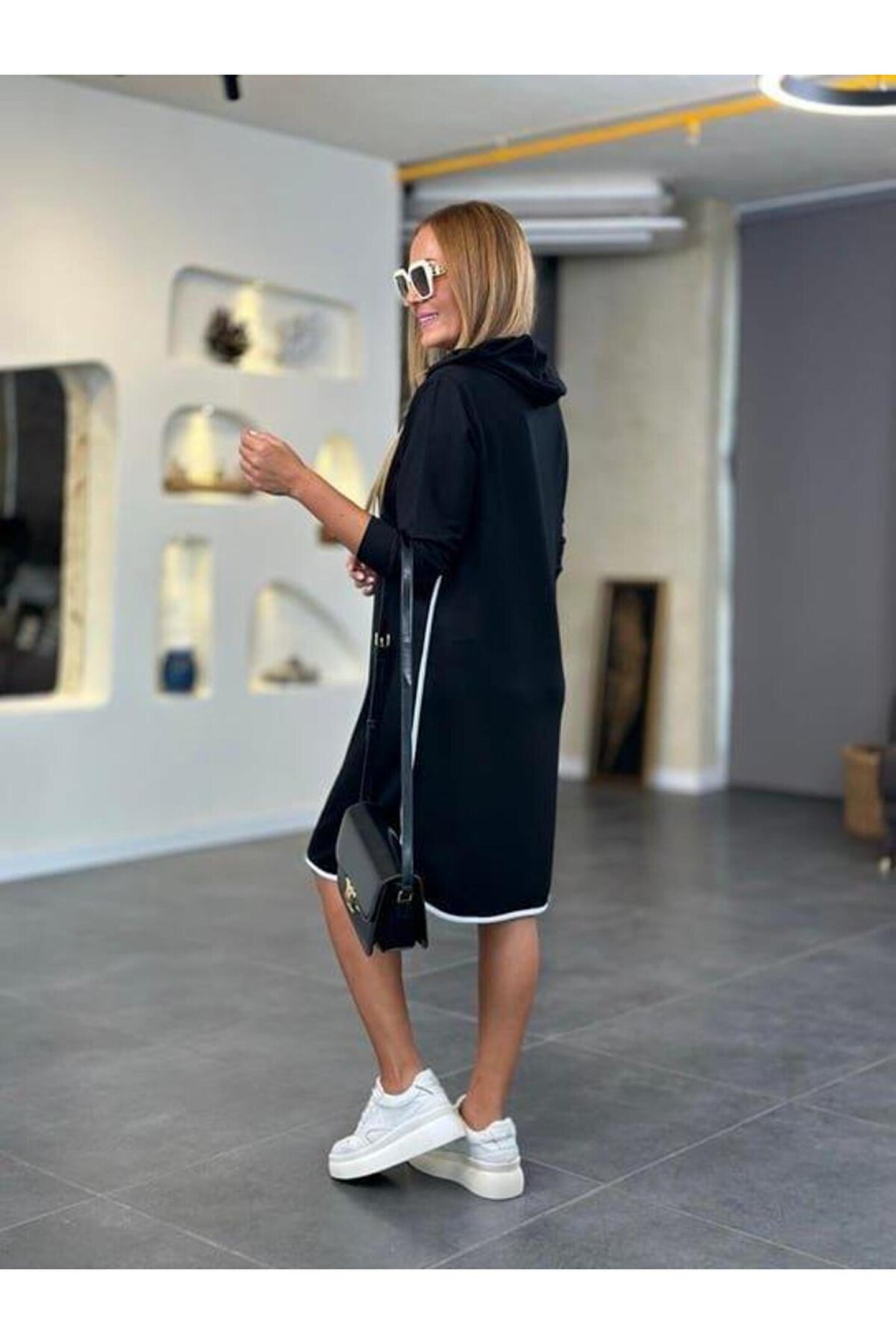Kadın Uzun Kollu Kapüşon Ve Ribana Detay Diz üstü Elbise