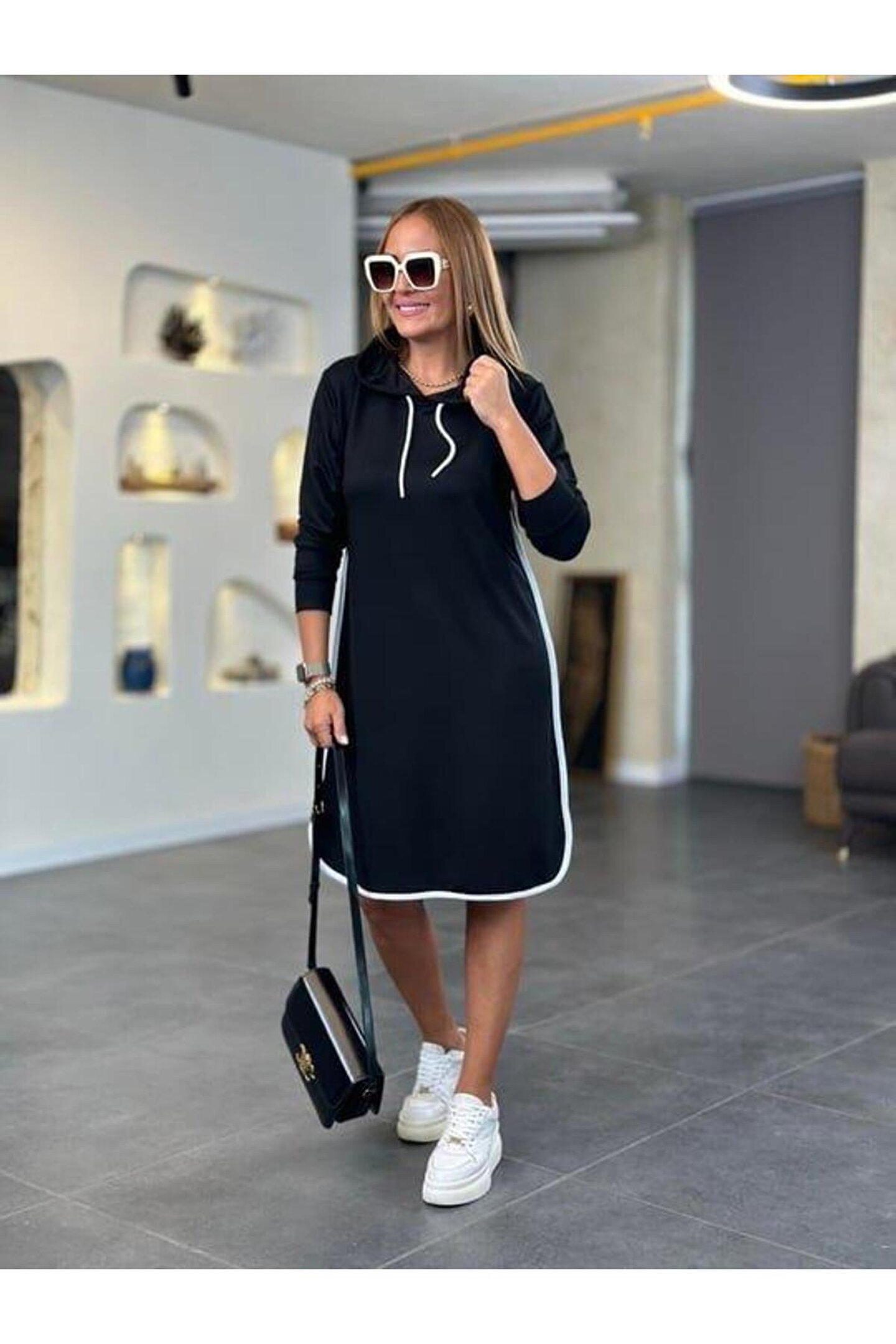 Kadın Uzun Kollu Kapüşon Ve Ribana Detay Diz üstü Elbise