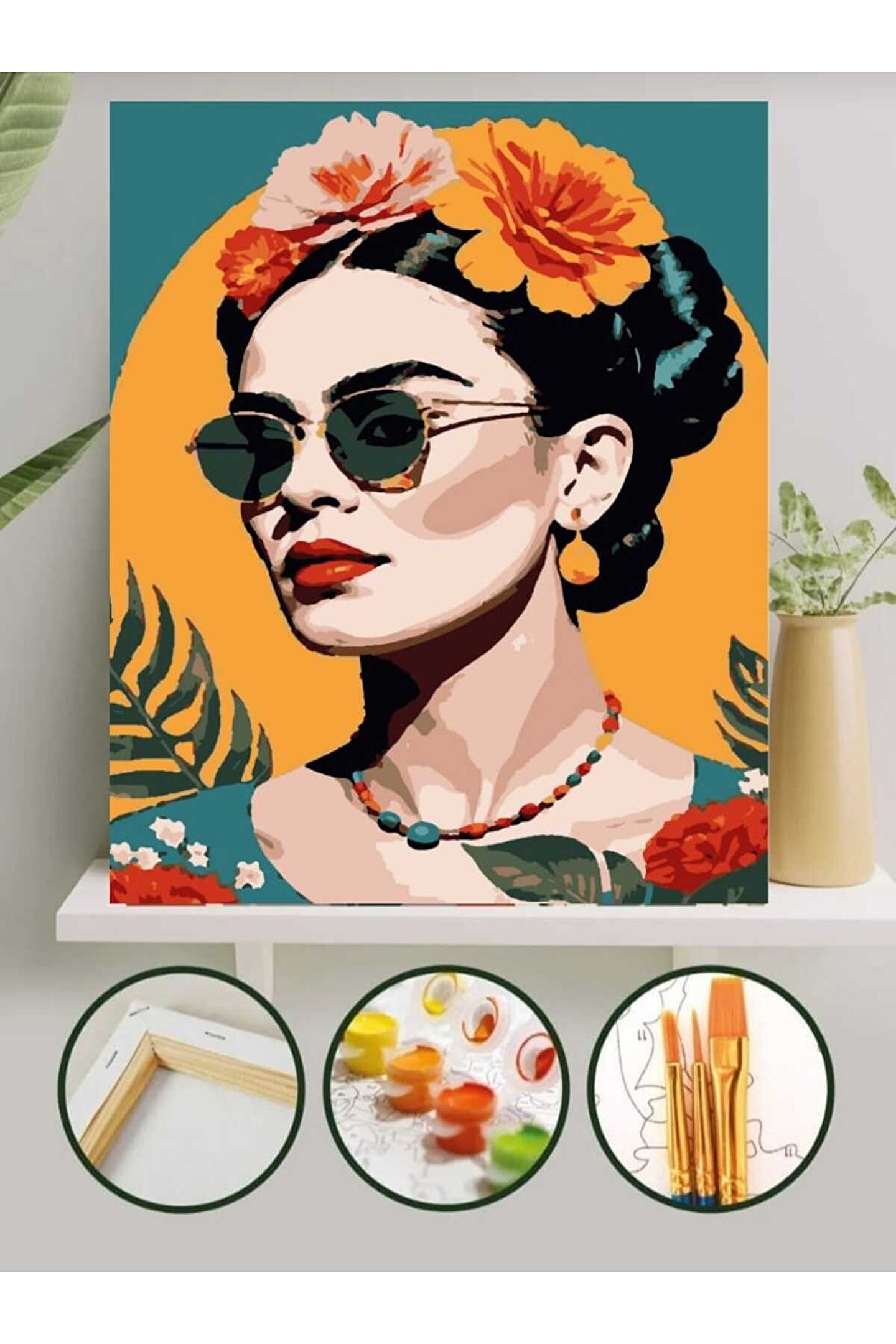 Lamba Cini Sayılarla Boyama Kasnaklı Tablo Seti Fırça Boya Dahil 40x50 FRİDO