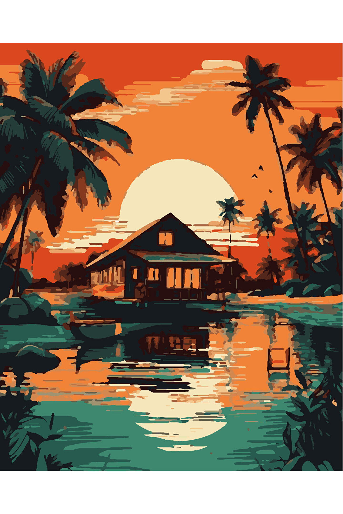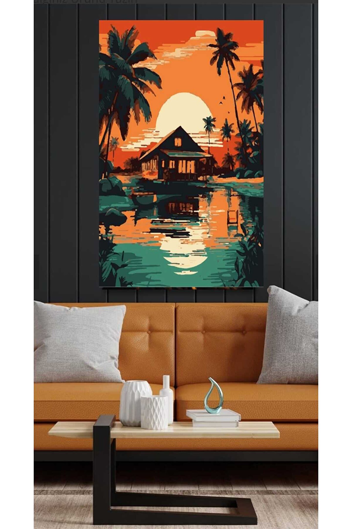 Lamba Cini Sayılarla Boyama Kasnaklı Tablo Seti Fırça Boya Dahil 40x50 GÖL EVİ