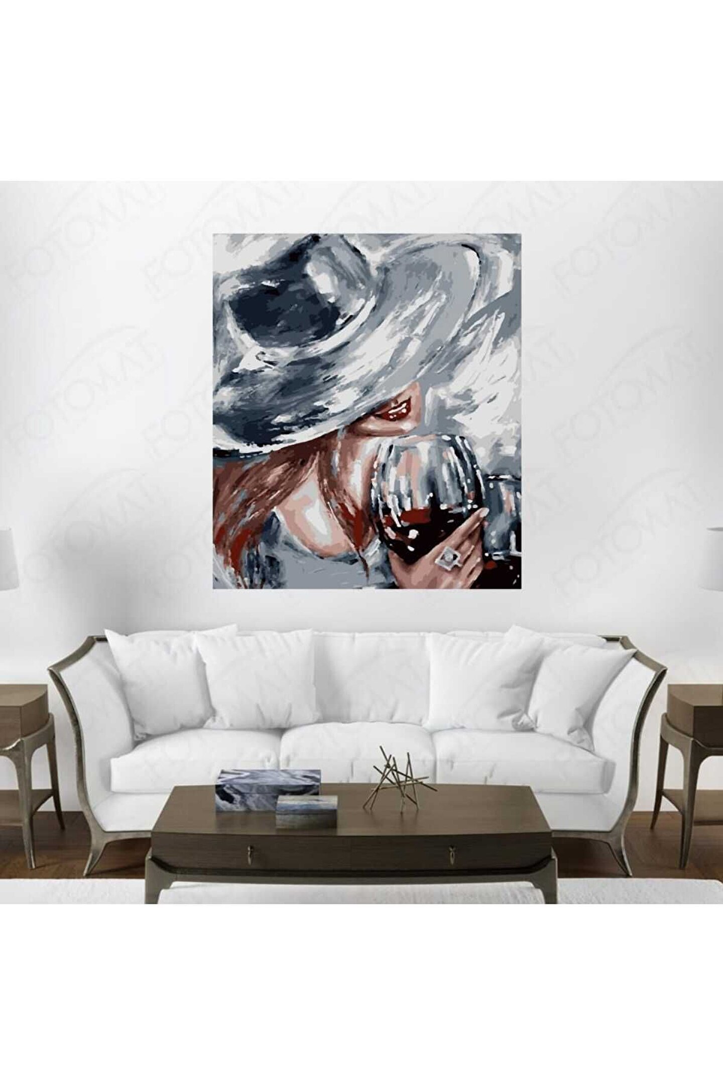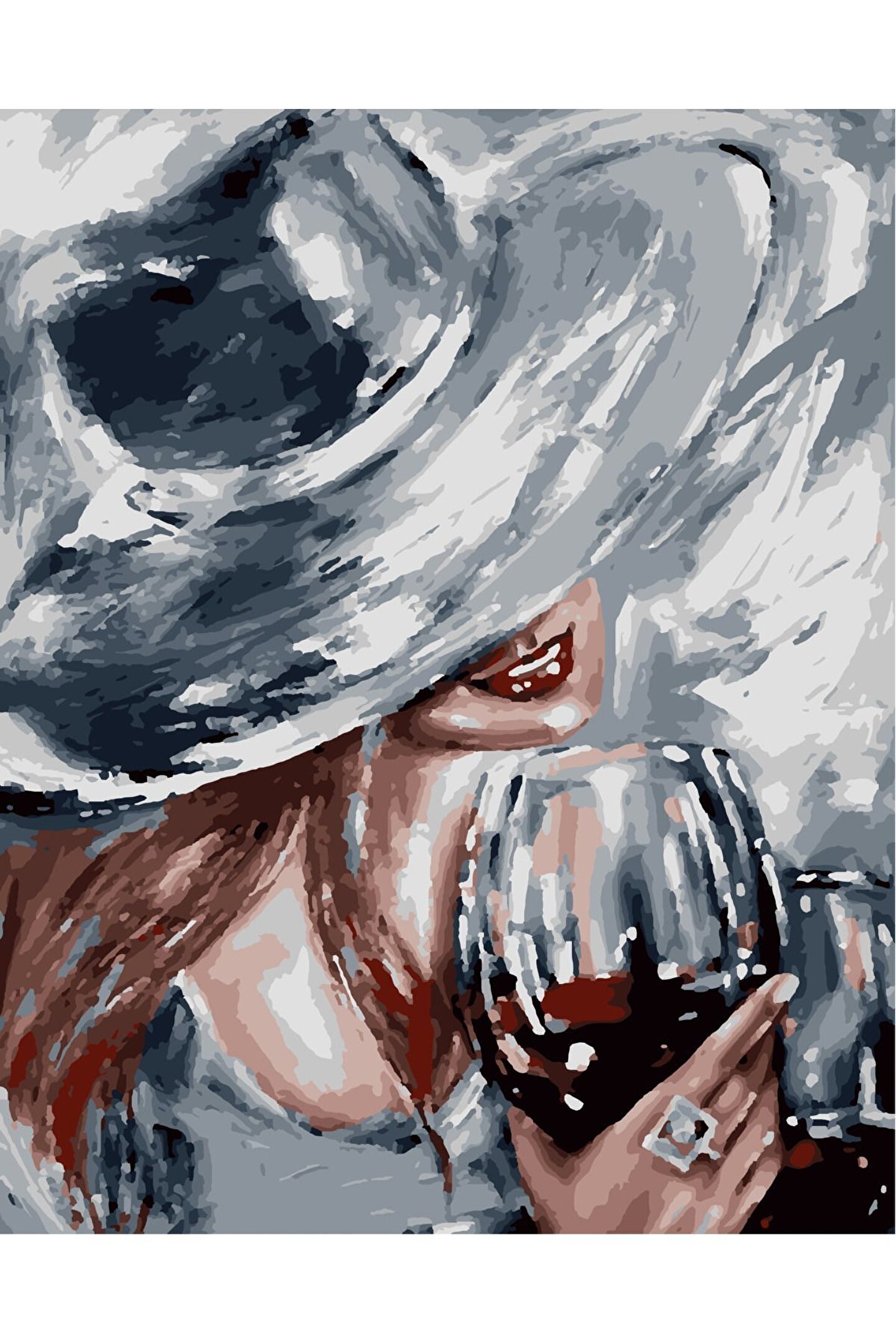 Lamba Cini Sayılarla Boyama Kasnaklı Tablo Seti Fırça Boya Dahil 40x50 Şarap Kadın