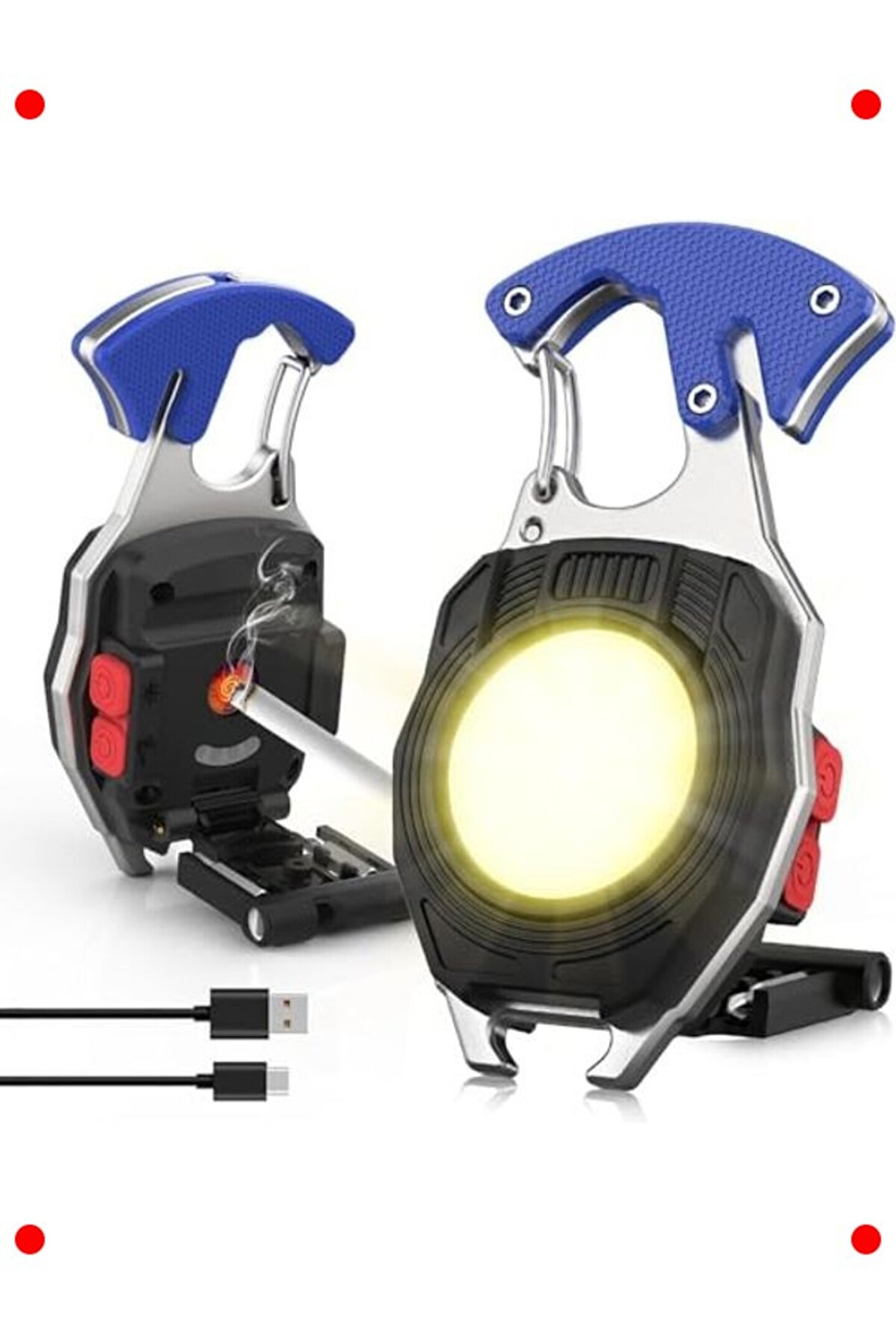 Her an yanınızda bulundurabileceğiniz bu çok fonksiyonlu ni el feneri ile acil durumlara ve günlük ihtiyaçlarınıza hazırlıklı olun.; COB teknolojisi sayesinde 800 lümen parlaklığında güçlü bir ışık sunarken, 7 farklı aydınlatma modu ile çeşitli ihtiyaçlara cevap verir.; USB Type-C şarj özelliği sayesinde kolayca şarj edilebilir ve her zaman kullanıma hazırdır.; Anahtarlık tipi tasarımı, taşıma kolaylığı sunar.; İçerisinde bulunan kamp ateş başlatıcı, düdük, jilet ve şişe açacağı gibi ek özellikler, onu outdoor aktiviteleri ve acil durumlar için vazgeçilmez kılar.; Küçük boyutu ve hafif yapısıyla çantanızda veya cebinizde rahatça taşınabilir, her an ışık ve pratik çözümler sunar.