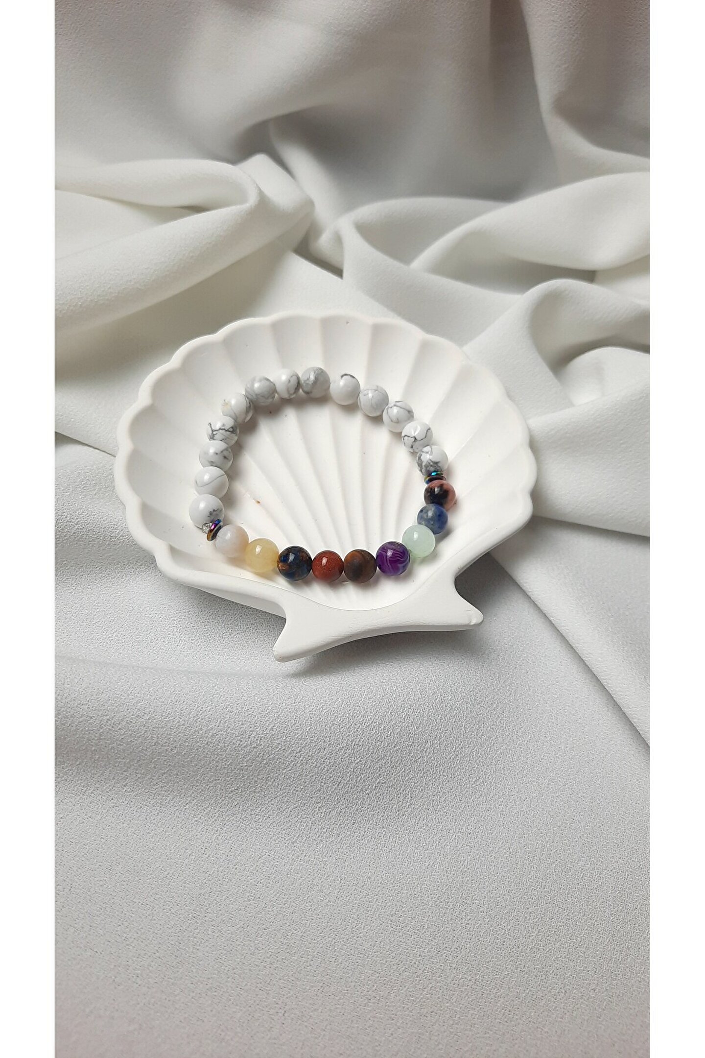 - Doğal taş kullanımı sayesinde her bileklik benzersiz ve otantik bir görünüm sunar; - Havlit, opal, amazonit, murano kuvars ve yıldız taşı gibi farklı türdeki doğal taşlar, bilekliğe eşsiz bir parlaklık ve renk çeşitliliği katar; - Kaplan gözü gezegenler tasarımı, hem şıklığı hem de astrolojik anlamı bir arada sunarak kişisel tarzınıza derinlik katar;