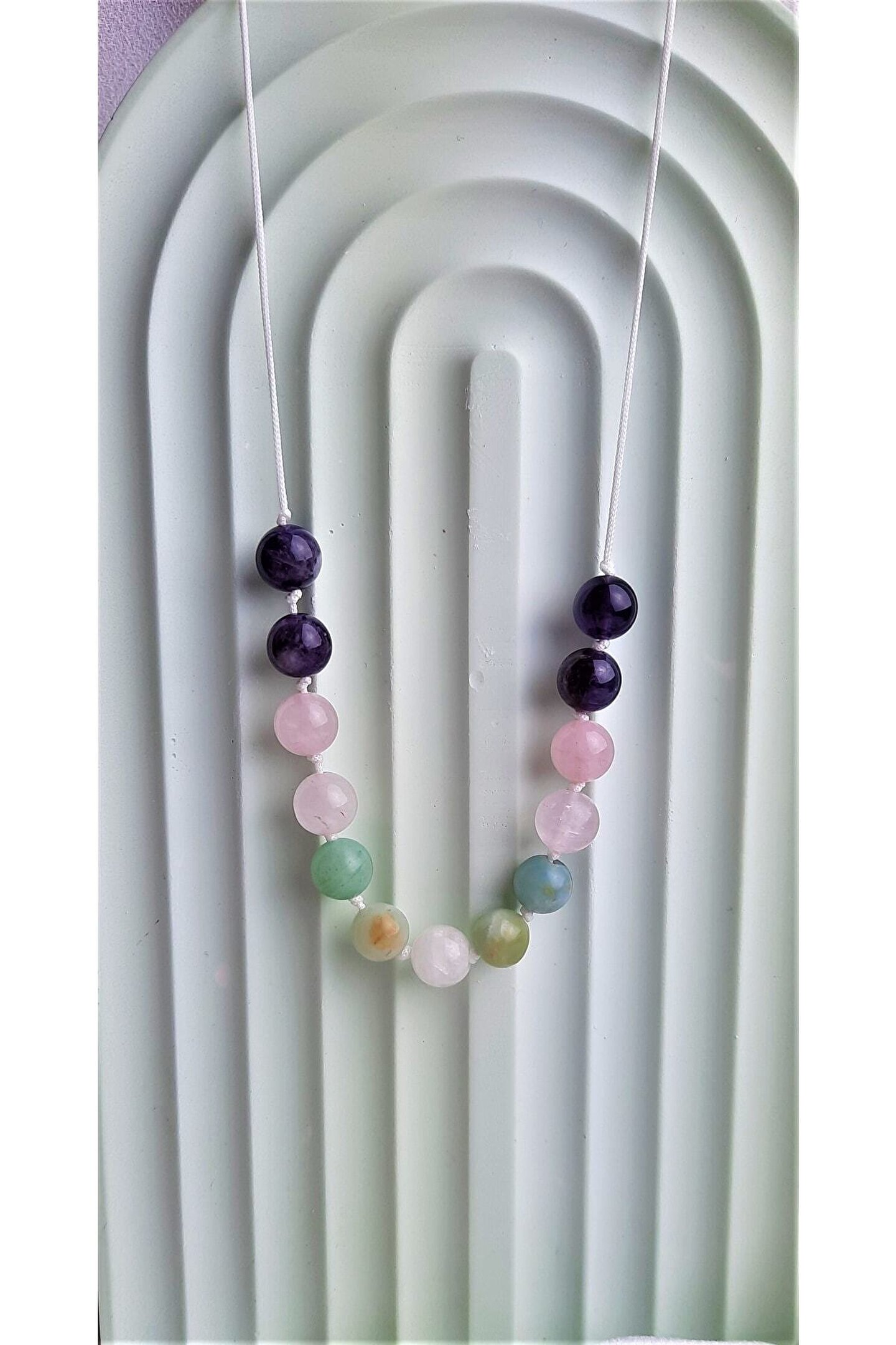 LAVINIA ATELİER ÖZEL TASARIM DİŞİL ENERJİ KOLYESİ SELENE %100 GERÇEK DOĞAL TAŞ KULLANILARAK TASARLANMIŞTIR. ORTALAMA UZUNLUK 45CM OLUP İSTENİLEN ÖLÇÜDE HAZIRLANABİLİR. KULLANILAN DOĞAL TAŞLAR ; AY TAŞI , AMAZONİT ,PEMBE KUVARS, AMETİST. ÜRÜNLER DOĞAL TAŞ OLDUĞUNDAN RENK VE ŞEKİLLERİNDE KÜÇÜK FARKLILIKLAR GÖRÜLEBİLİR. SATICI ADINDA LAVINIA ATELİER YAZDIĞINDAN EMİN OLUNUZ. DOĞAL TAŞLARIN ÇEŞİTLİENERJİLERE SAHİP OLDUĞU BİLİNMEKTEDİR , ANCAK ETKİLERİ KİŞİDEN KİŞİYEDEĞİŞKENLİK GÖSTEREBİLİR. TAŞLARIN ÖZELLİKLERİNİN BİLİMSEL KESİNLİĞİ YOKTUR ,FAKAT ÜRÜNLERİMİZDE KULLANILAN TÜM TAŞLAR %100 GERCEK DOĞAL TAŞ OLUP GÜVENLE ALIŞVERİŞYAPABİLİRSİNİZ.