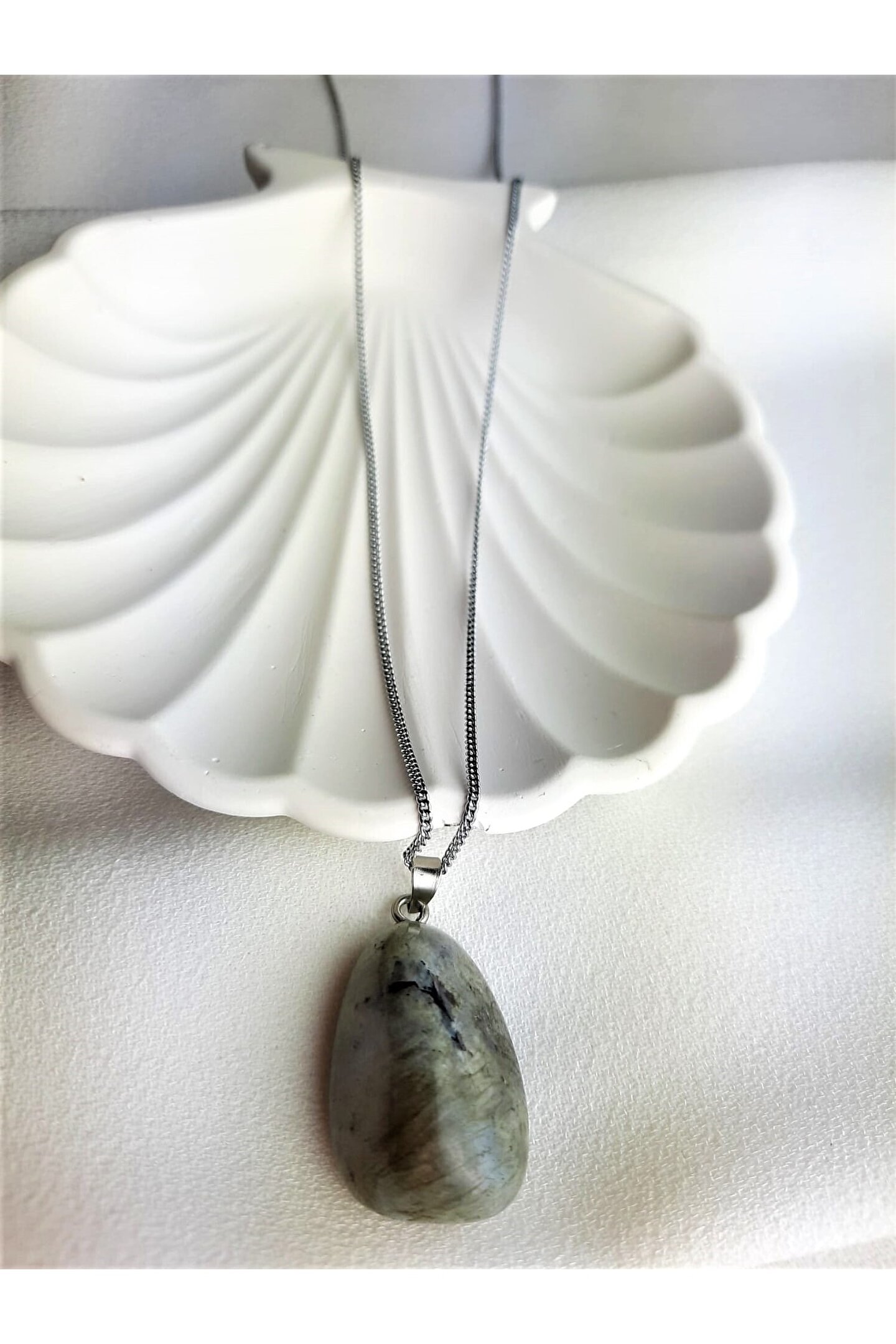 Doğal taş kullanımı sayesinde her kolye benzersiz ve otantik bir görünüm sunar; Labradorit taşı, enerjiyi dengelemeye yardımcı olur ve pozitif bir etki yaratır; Doğal taş materyali ile hem şıklığı hem de doğallığı bir arada yaşatır;