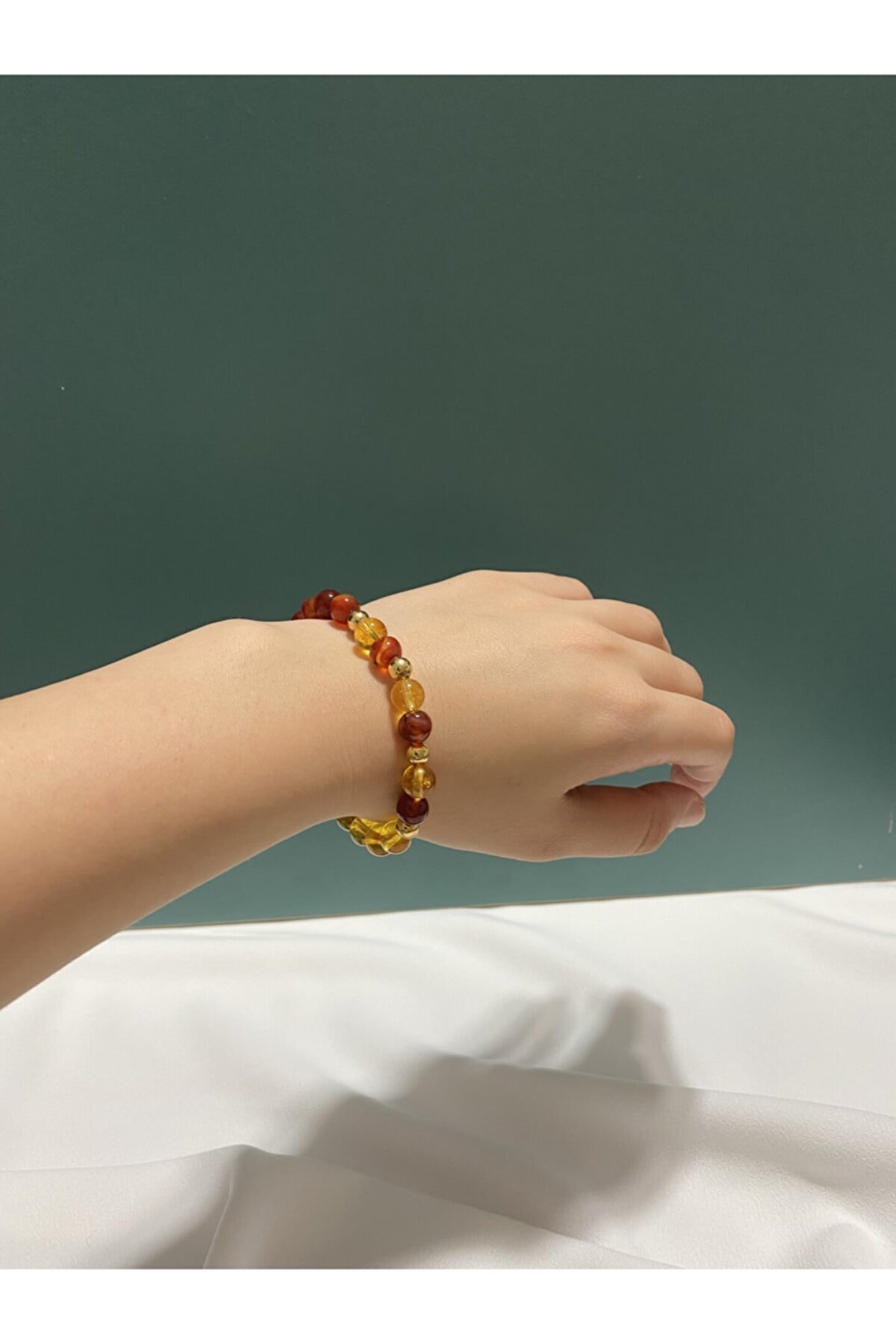 Doğal sitrin ve akik taşlardan üretilmiş, her biri benzersiz ve otantik bir dokunuş sunar; Doğal taş kullanımı sayesinde, her bileklik eşsiz bir karaktere sahip olup, kişisel tarzınıza özgün bir hava katar; Doğal taş materyali ile hem şıklığı hem de doğallığı bir arada sunarak, günlük kullanım için idealdir; Unisex tasarımı ile hem kadınlar hem de erkekler için uygun olan bu bileklik, herkesin zevkine hitap eder;