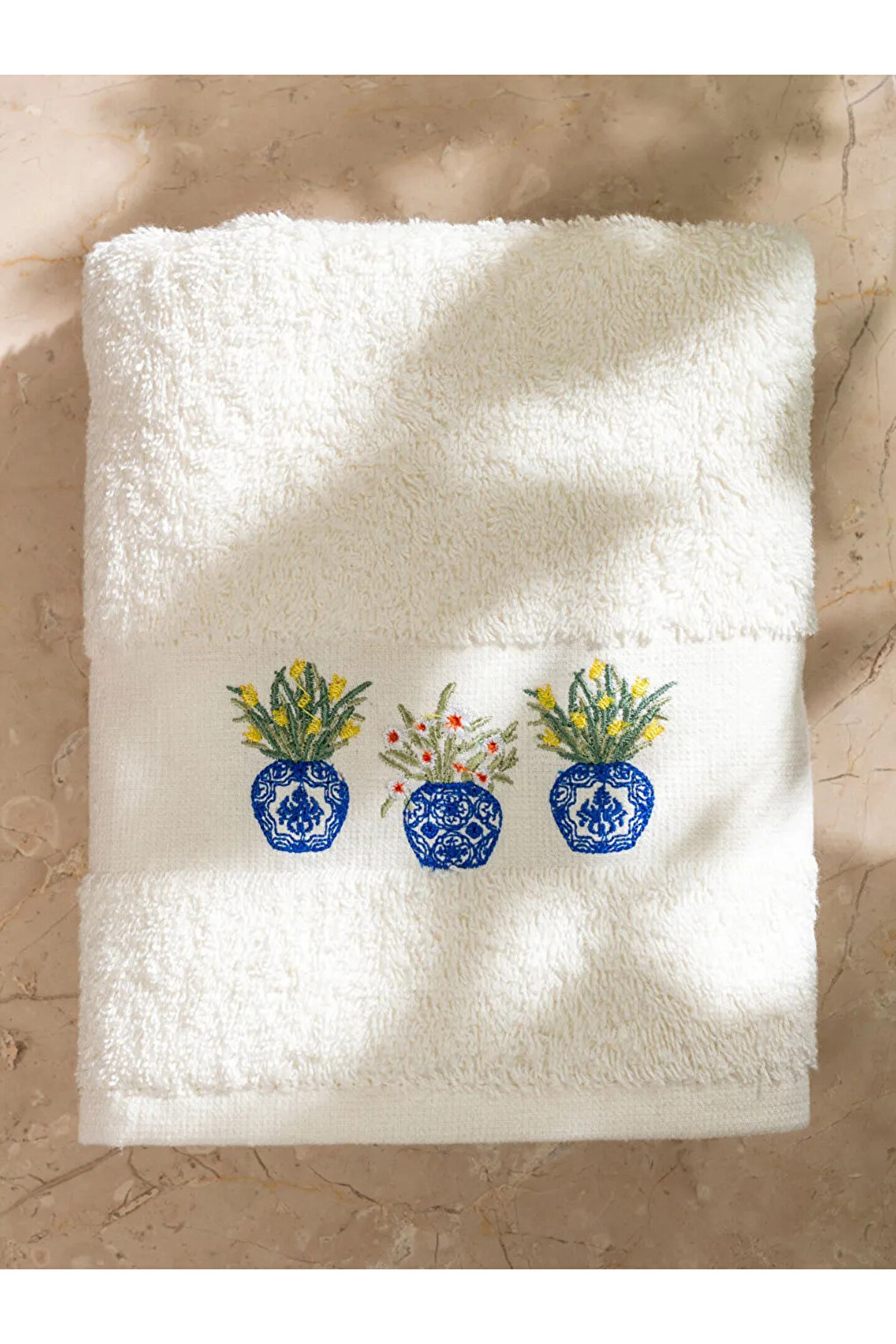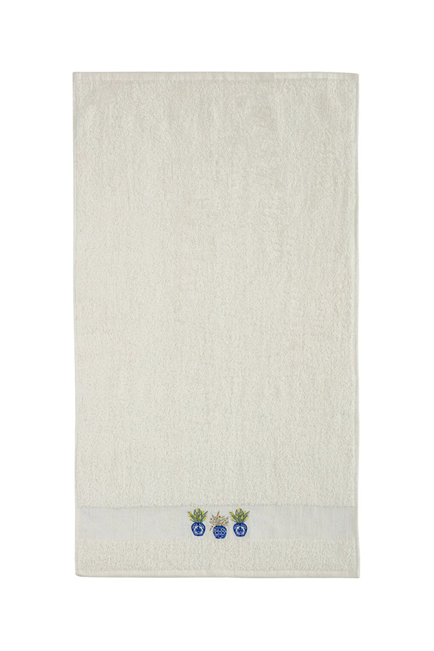 Nakışlı pamuklu yüz havlusu, pamuk gibi doğal ve yumuşak bir malzemeden üretilmiştir. Pamuk, havlunun cilde hassas bir şekilde temas etmesini ve suyu etkili bir şekilde emmesini sağlar.