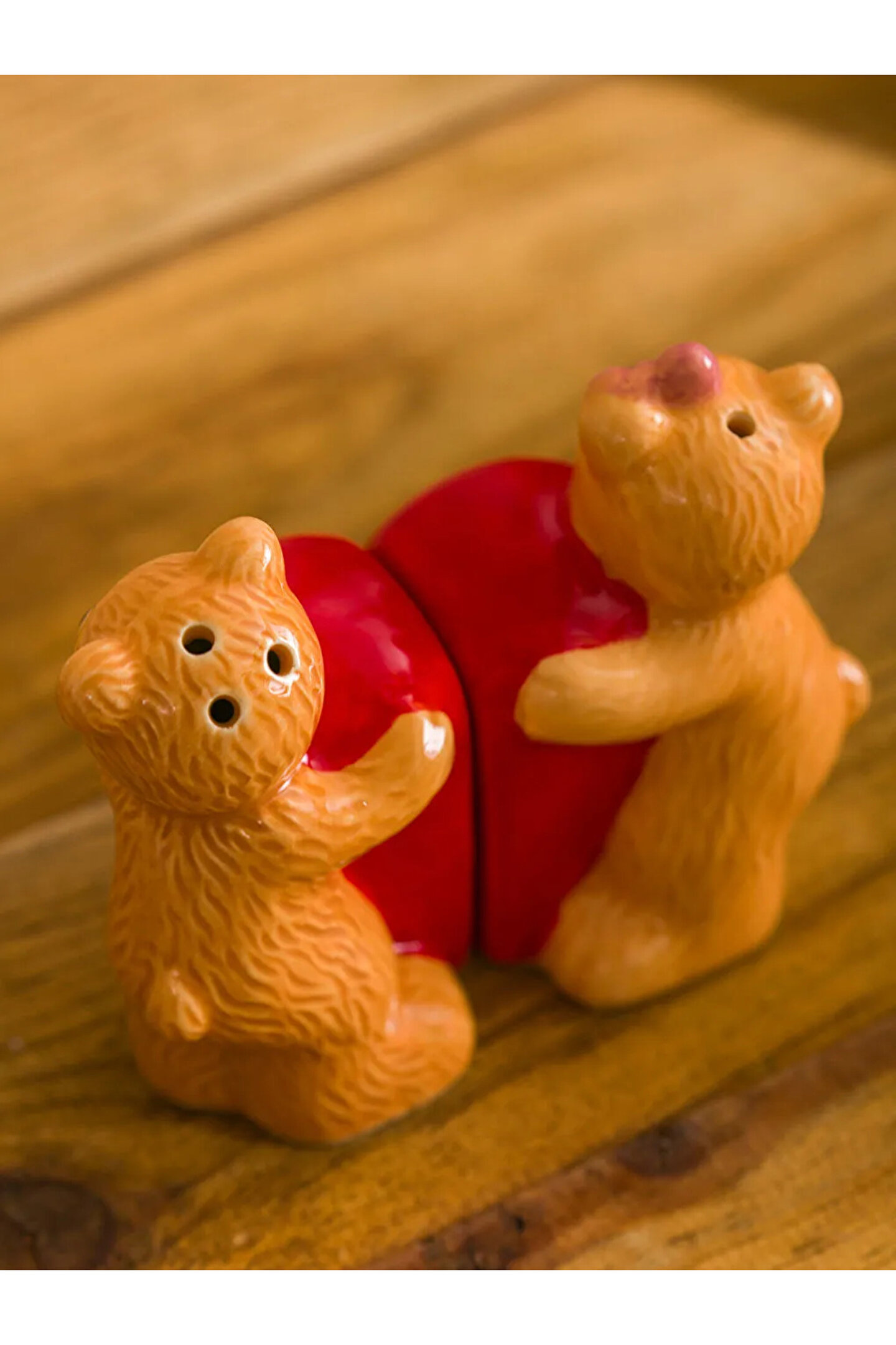 • İki parçadan oluşan ayı figürlü set, birleştiğinde kalp şeklini tamamlar. Figürlerden birinin başında fiyonk detayı bulunur.