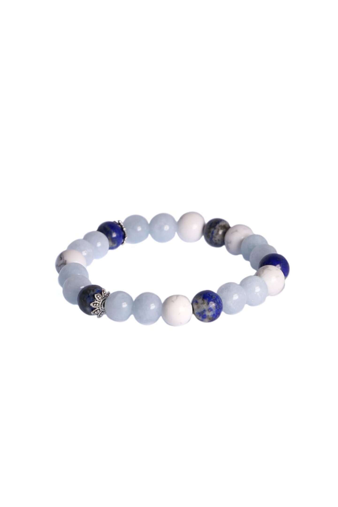 Doğal Lapis Lazuli Havlit AkuamarinTaş Depresyonu yenmenize yardım ediyor. ; Rahatlama taşı olan AKUAMARİN depresyon tedavisine yardım edip, gençlik, canlılık verir.; Zihinsel temizlik taşı olan LAPİS LAZULİ iç barışı ve kişinin kendisine değer vermesini sağlar.; Stres giderici mutluluk taşı olan HAVLİT de iç dünyanızı sakinleştirir, içinizdeki fırtınayı yumuşatır ve öfkenizi azaltır.; AKUAMARİN ve LAPİS LAZULİ birlikte vücudun hormon dengesini sağlayıp, tiroid bezlerinizi güçlendirirken HAVLİT de kalsiyum dengenizi korur.; AKUAMARİN alkol, sigara ve uyuşturucu gibi zehirli maddelerden uzak tutar, bunlara olan tiryakiliği zayıflatır ve solunum yollarında iyileştirici etkisi vardır.; ; Lapis Lazuli Havlit Akuamarin modelimiz ortalama 22-23 adet 8mm A kalite Gerçek Doğal Taştan oluşur.; Bileklikte kullanılan 925 ayar GÜMÜŞ ile doğal taşın etkisi arttırılmıştır. ; Bileklik dayanıklı elastik ip nedeniyle her bileğe uyumludur. Siparişiniz özel Lc19 kutusunda gönderilecektir. ;