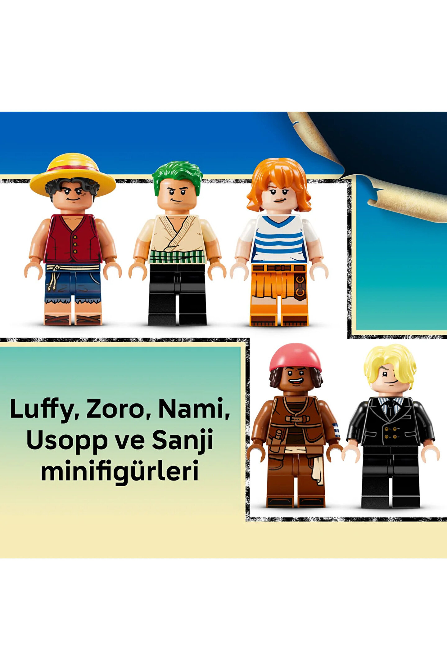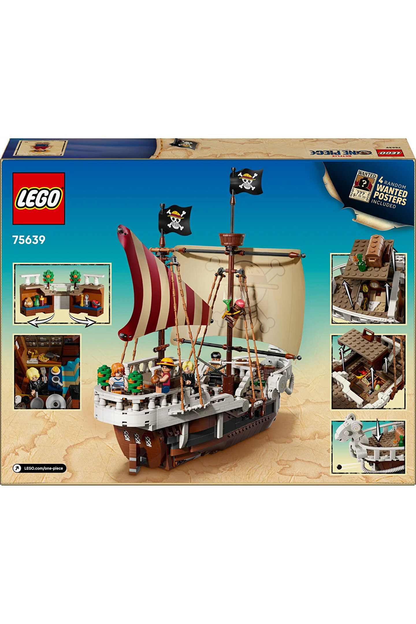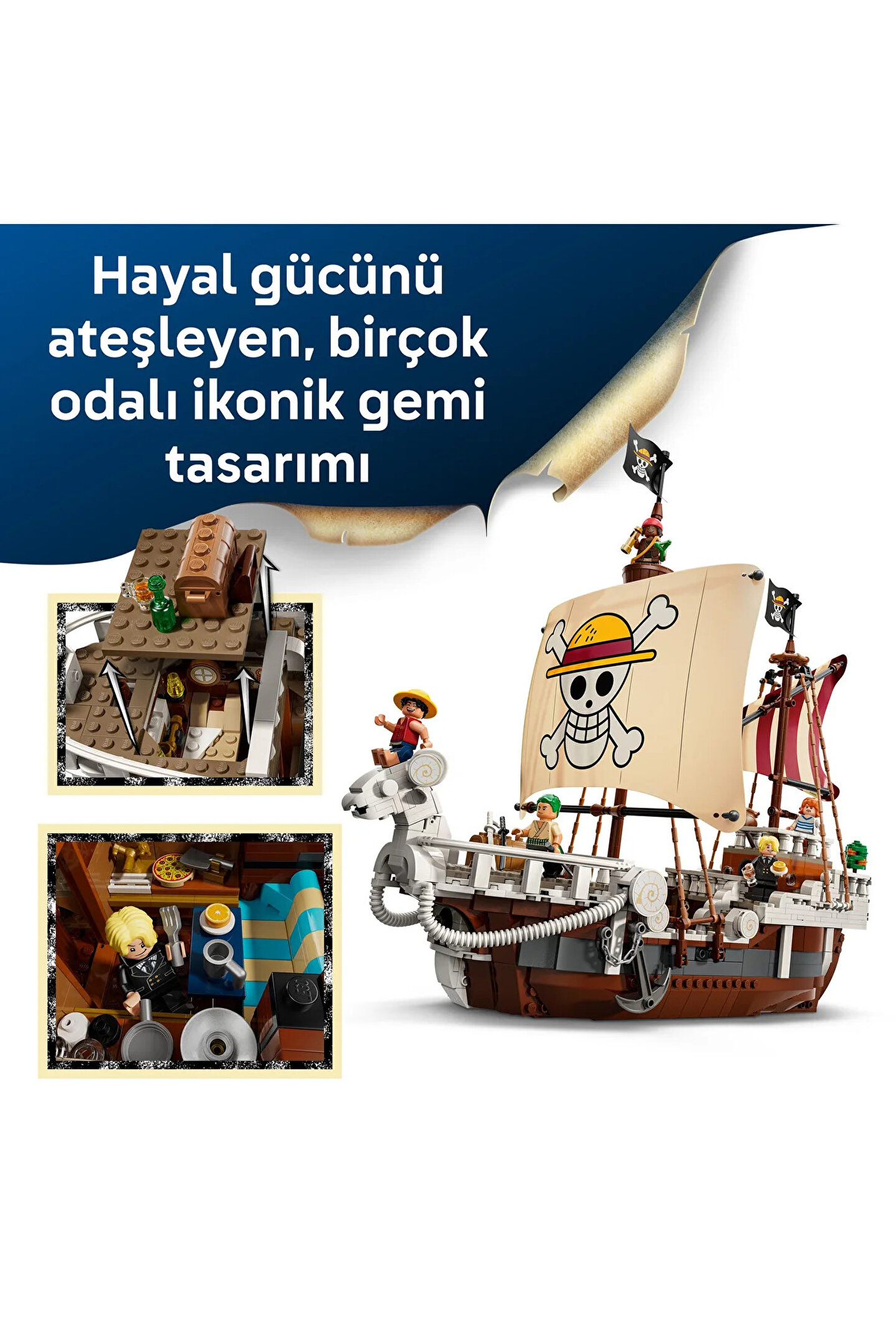 ONE PIECE hayranları için mükemmel bir yapım deneyimi sunan LEGO ONE PIECE Going Merry Korsan Gemisi (75639), detaylı iç ve dış tasarımıyla hem oyun hem de sergileme için ideal bir settir. 10 yaş ve üzeri erkek ve kız çocuklara hitap eden bu yapım seti, Hasır Şapka Korsanları'nın ikonik gemisini yeniden canlandırma fırsatı verir. Gemide mürettebat kabini, mutfak, depo alanı ve aksesuar atölyesi gibi zengin iç mekanlar yer alırken, üst güvertede aksiyon hiç durmaz. Sete dahil 5 anime minifigürü sayesinde çocuklar kendi ONE PIECE hikayelerini yazabilir: Luffy, koyun başlı heykelin üzerine oturmuş, topa komuta eder; Zoro güvertede antrenman yapar; Nami mandalina ağaçlarının gölgesinde dümeni kontrol eder; Usopp karga yuvasından gözlem yapar; Sanji ise mutfakta yemek servisiyle meşguldür. Gemide ayrıca 4 adet 'Aranıyor' posteri ve birçok etkileşimli detay bulunur. LEGO Builder uygulaması sayesinde çocuklar bu maceralı modeli yakınlaştırabilir, döndürebilir ve ilerlemeyi takip edebilir. Set, 1376 parçadan oluşur.