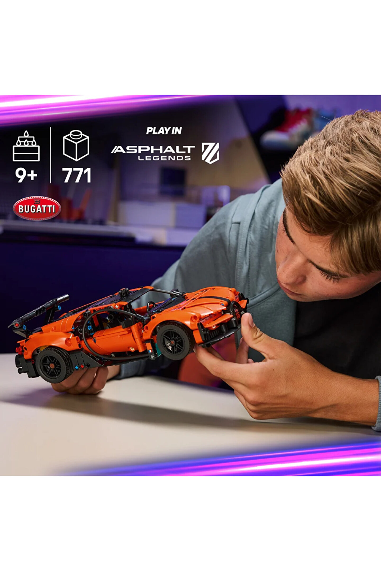 9 yaş ve üzeri erkek ve kız çocuklar için tasarlanan LEGO Technic Bugatti Chiron Pur Sport Hiper Araba (42222) ile yarış tutkunlarını heyecanlandırın! Yarış arabası modeli keşfedilecek birçok detaya sahiptir. Hiper araba modelinin üstündeki düğmeyi kullanarak yönlendirin, sonra W16 motoruna, açılan kapılara ve açılan kaputa göz atın. Oyuncak yapım setine LEGO Technic oyuncak arabanın çevrim içi ASPHALT LEGENDS video oyunundaki dijital versiyonunun kilidini açmak için kullanılabilen bir kod dahildir. Çocuklar oyuncak araç modellerini inşa ederken ve oynarken eğlenebilir. Sonra yeni bir aktivite zamanı geldiğinde oyundaki dijital versiyonla oynayıp yarışabilirler. Set, oyuncak yarış arabalararını seven çocuklar için eğlenceli bir hediye fikridir. LEGO Technic oyuncak yapım setleri, genç LEGO severleri ulaşılabilir ve gerçekçi bir şekilde mühendislikle tanıştıran gerçekçi hareketler ve mekanizmalar içerir. Çocuklar, LEGO Builder uygulamasını kullanarak güvenle inşa edebilir, kolay anlaşılır dijital talimatlarla yakınlaştırabilir, 3 boyutlu olarak döndürebilir ve ilerlemeyi takip edebilir. Sette 771 parça bulunur.