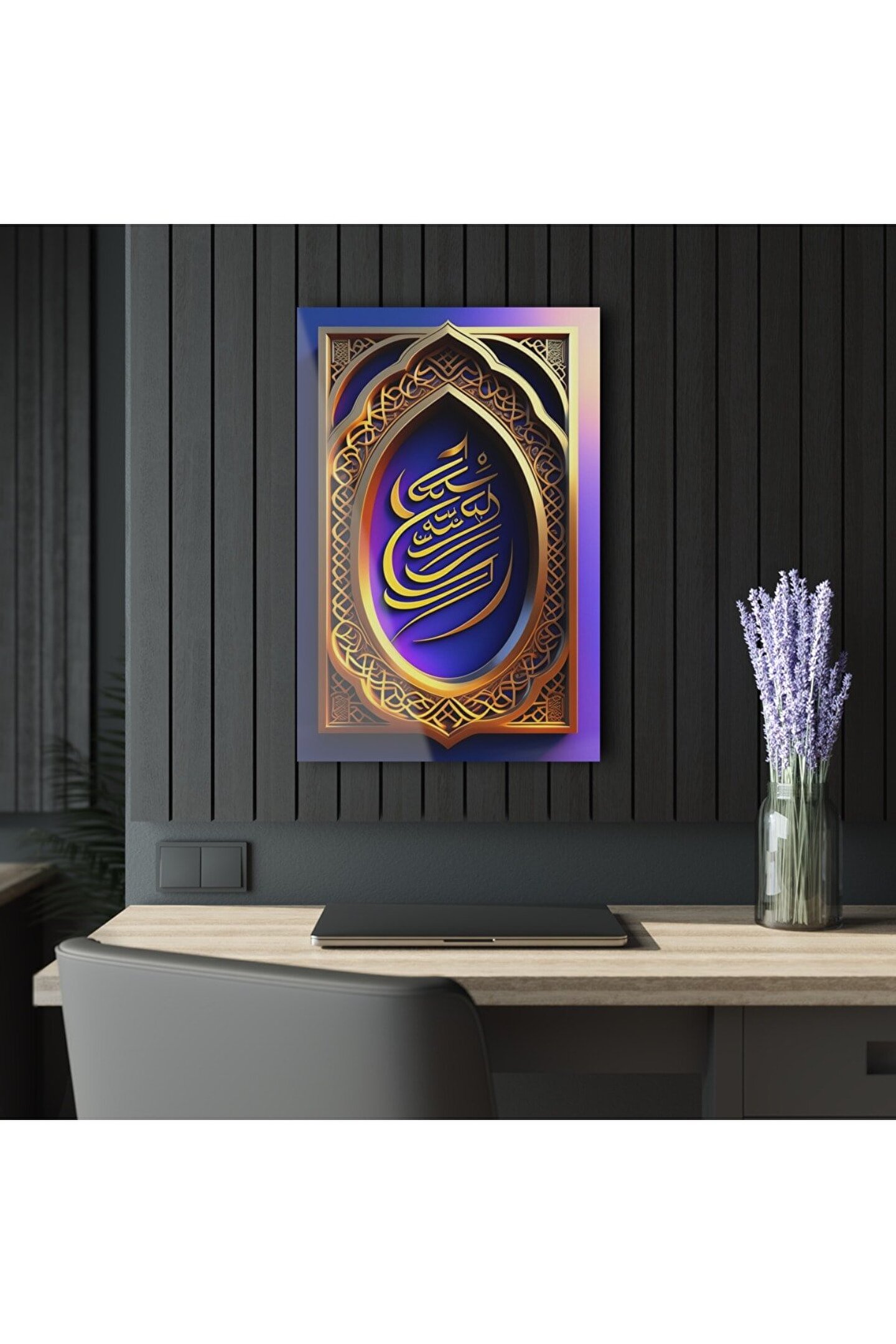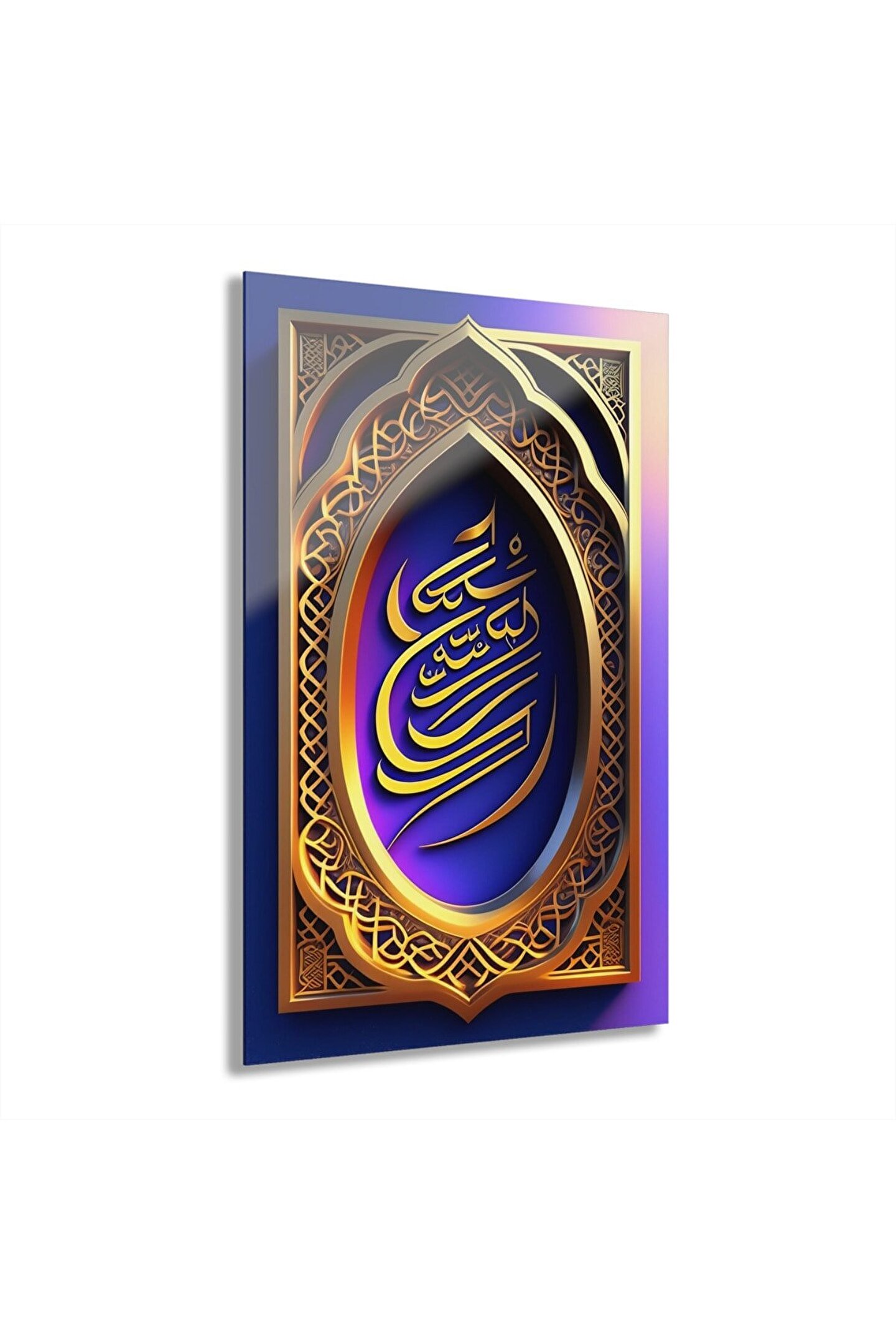 LEYLASER 3 Boyutlu Kuran-ı Kerim Altın ve Mor İslami Arapça Yazı Cam Tablo Duvar Dekoru