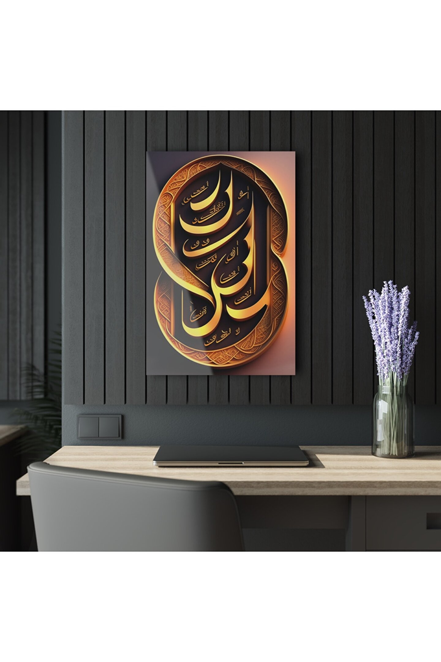LEYLASER 3 Boyutlu Kuran-ı Kerim İslami Arapça Yazı Cam Tablo Duvar Dekoru