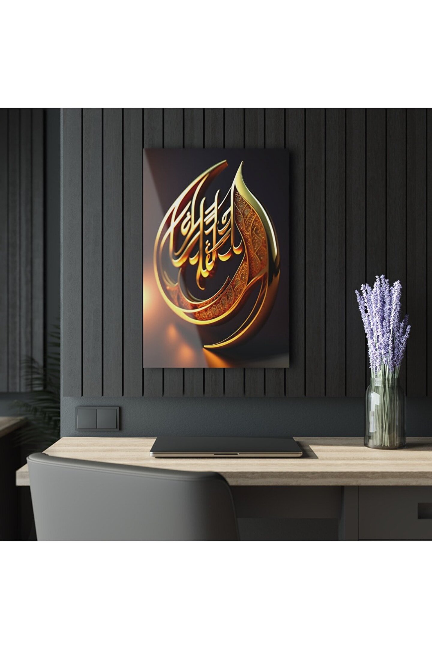 LEYLASER 3D Boyutlu Altın Gold Renkli Kuran Arapça Yazı Cam Tablo Duvar Dekoru 2