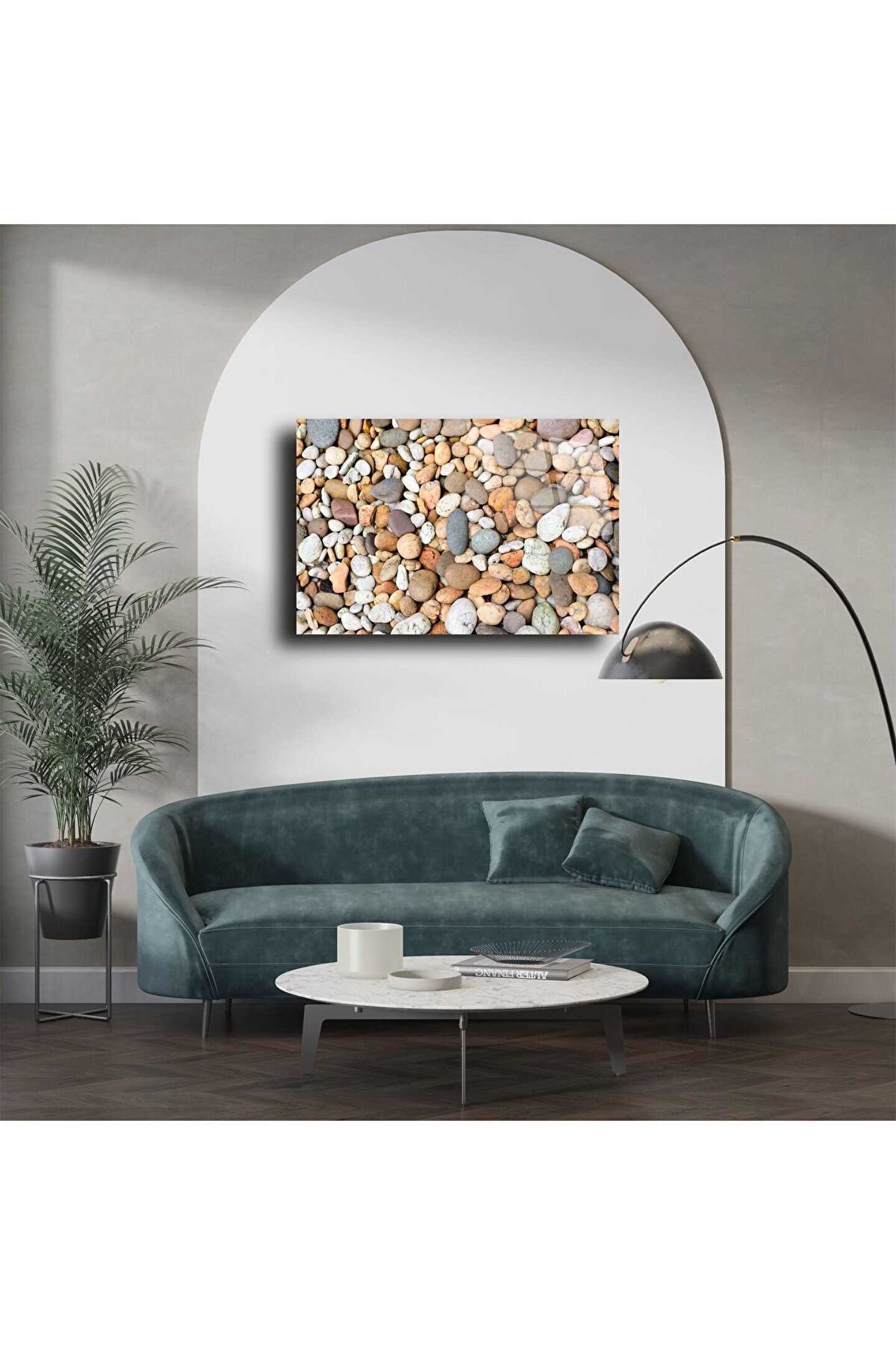 Bu açık tonlu doğal çakıl taşı desenli cam tablo, doğallığı ve sadeliği yansıtan zarif bir dekorasyon parçasıdır. Pastel renkli taşlar, mekâna yumuşaklık ve ferahlık kazandırırken, temperli cam yüzeyle birleşerek modern bir sanat eserine dönüşür. Dinginliği sevenler için görsel bir nefes alanı yaratır.