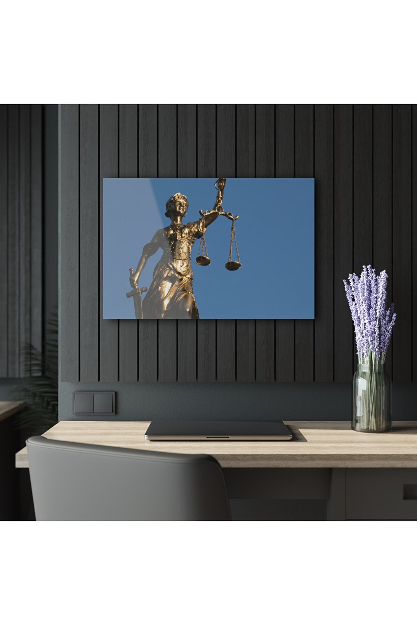 LEYLASER Adalet Terazisi Cam Tablo Duvar Dekoru 1
