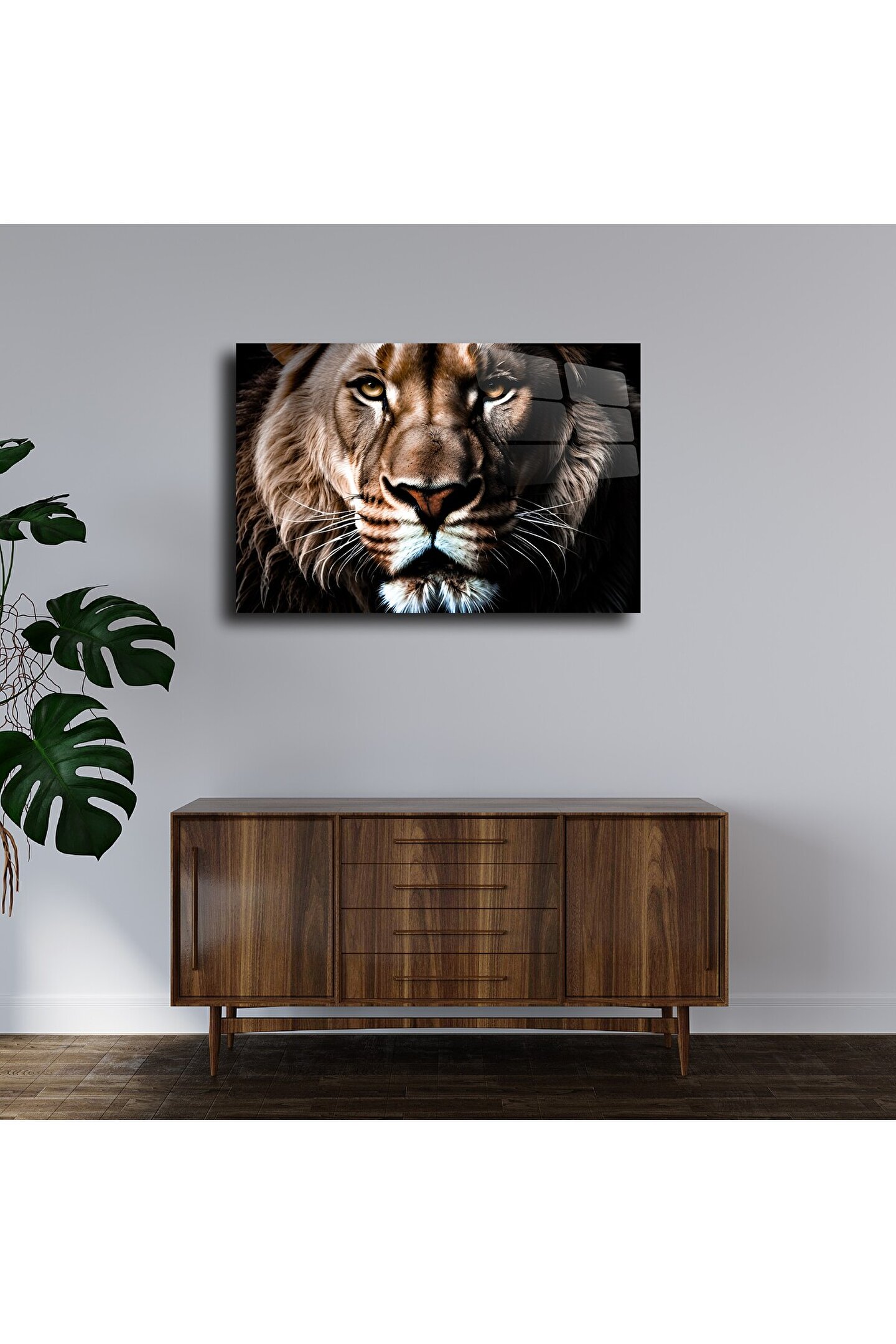 LEYLASER Aslan Yüzü Cam Tablo Duvar Dekoru