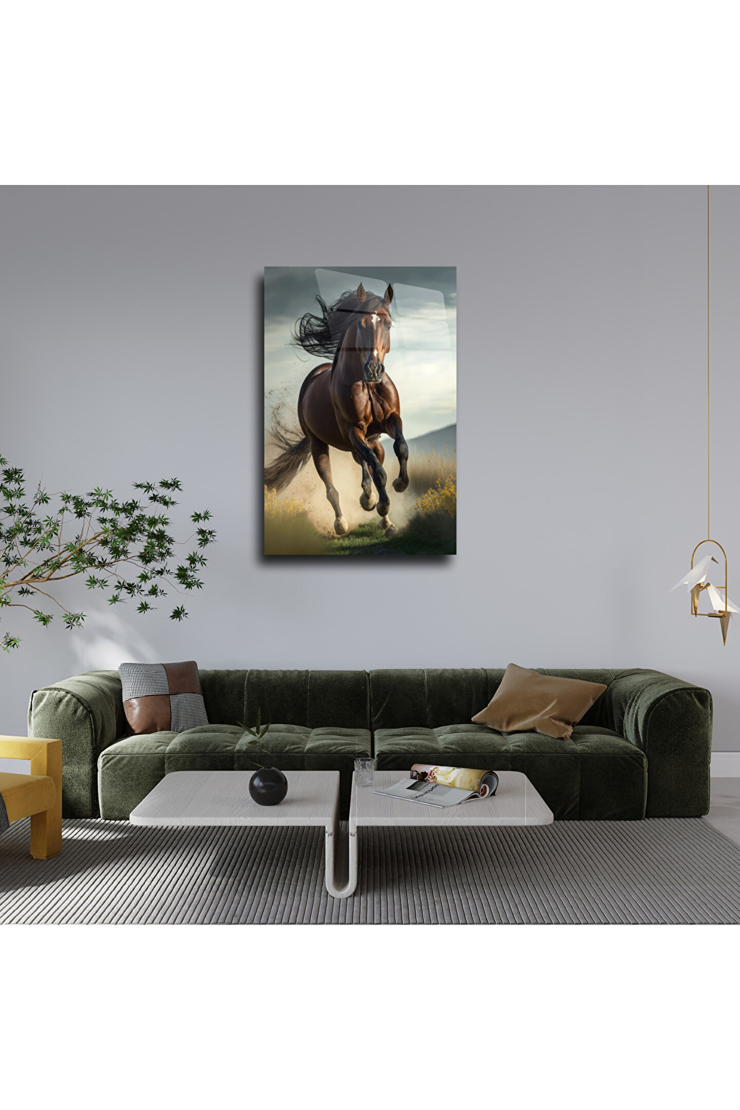 LEYLASER At Temalı Cam Tablo Duvar Dekoru 1