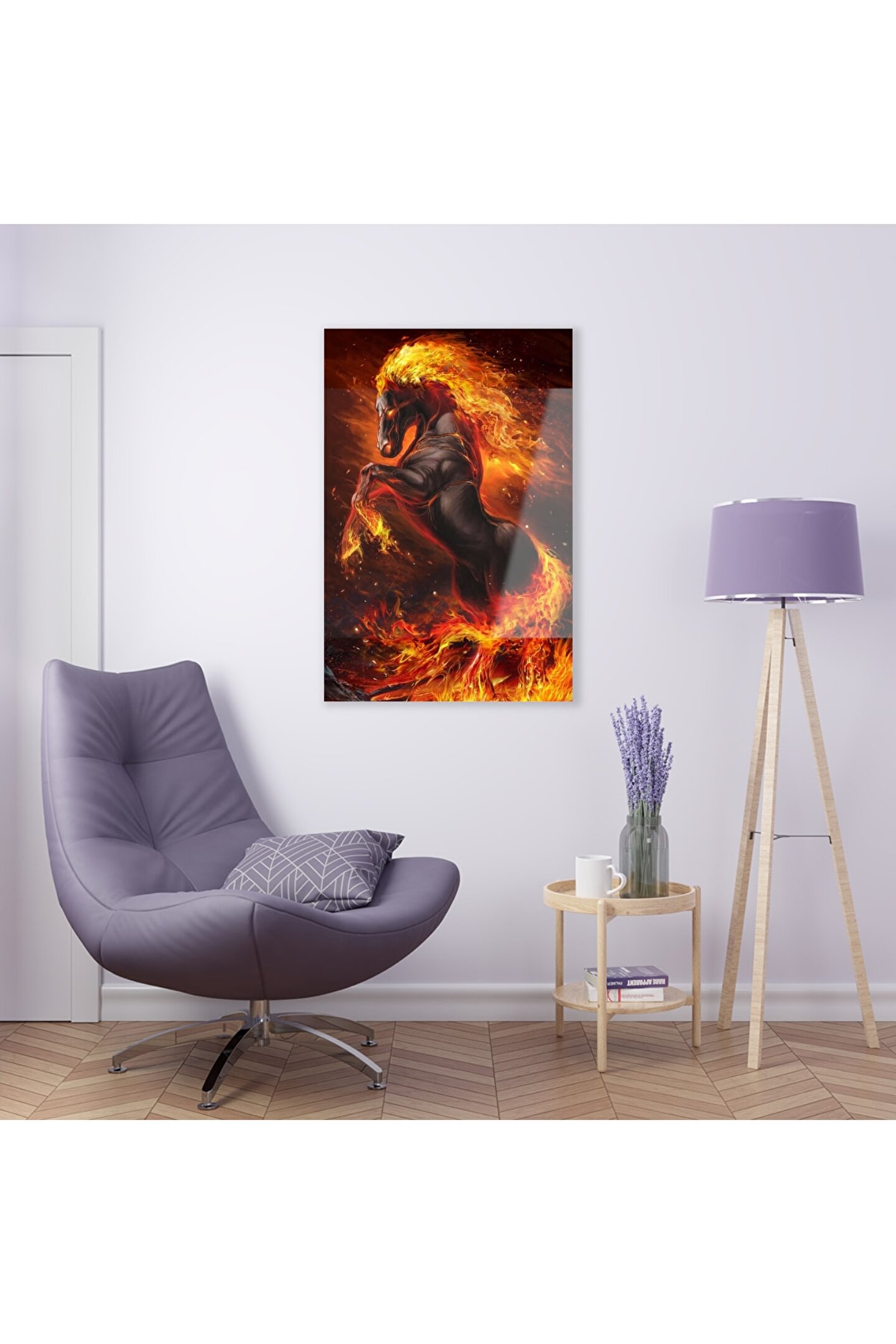 LEYLASER Ateşten At Cam Tablo Duvar Dekoru