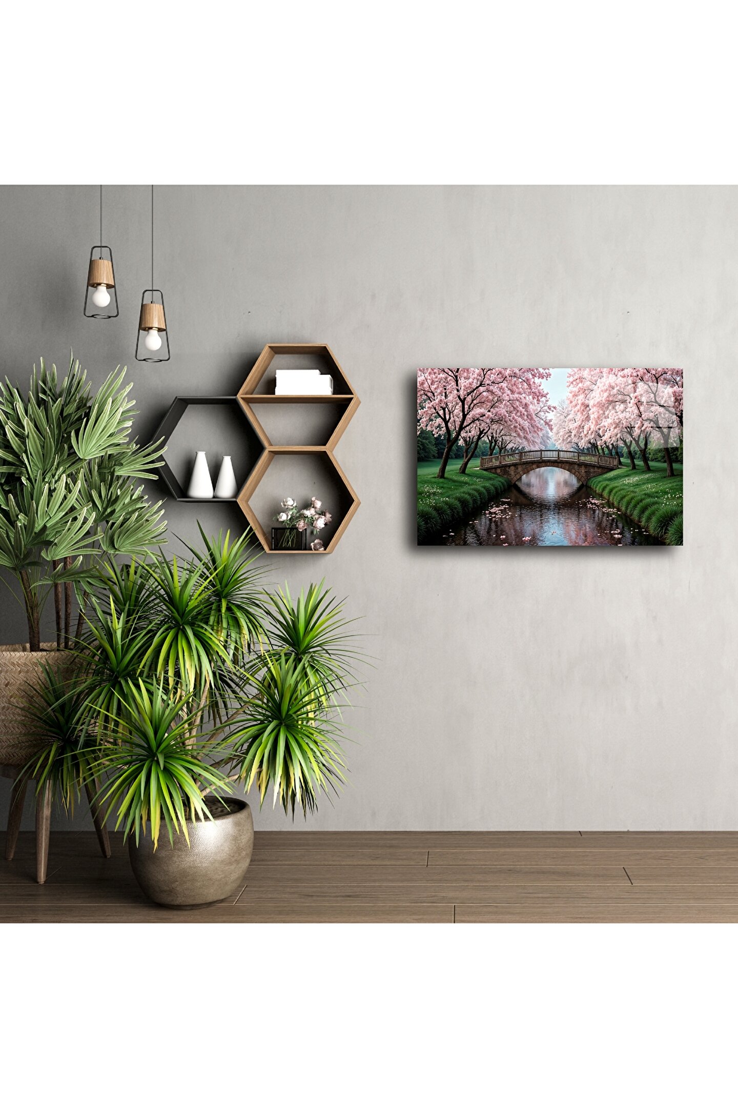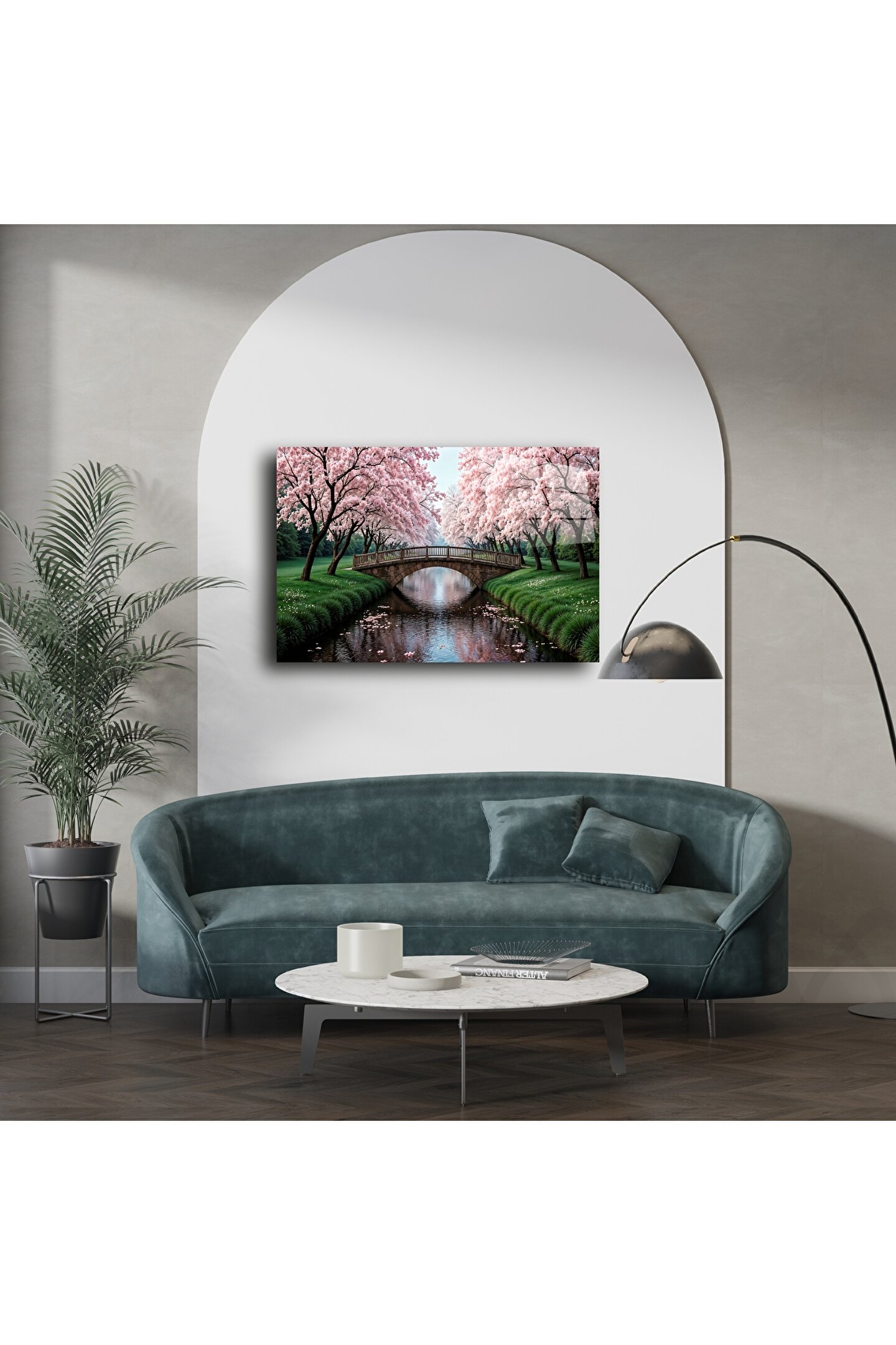Kiraz çiçeklerinin zarif dokunuşuyla bezeli bu tablo, huzur veren bir manzaranın ve nostaljik bir köprünün büyüleyici birleşimidir. Baharın taze enerjisini evinize taşıyan bu özel fotoğraf sanatı, doğanın romantik dokusunu yakalayan pastel tonlarıyla duvarlarınızı büyüleyecek.