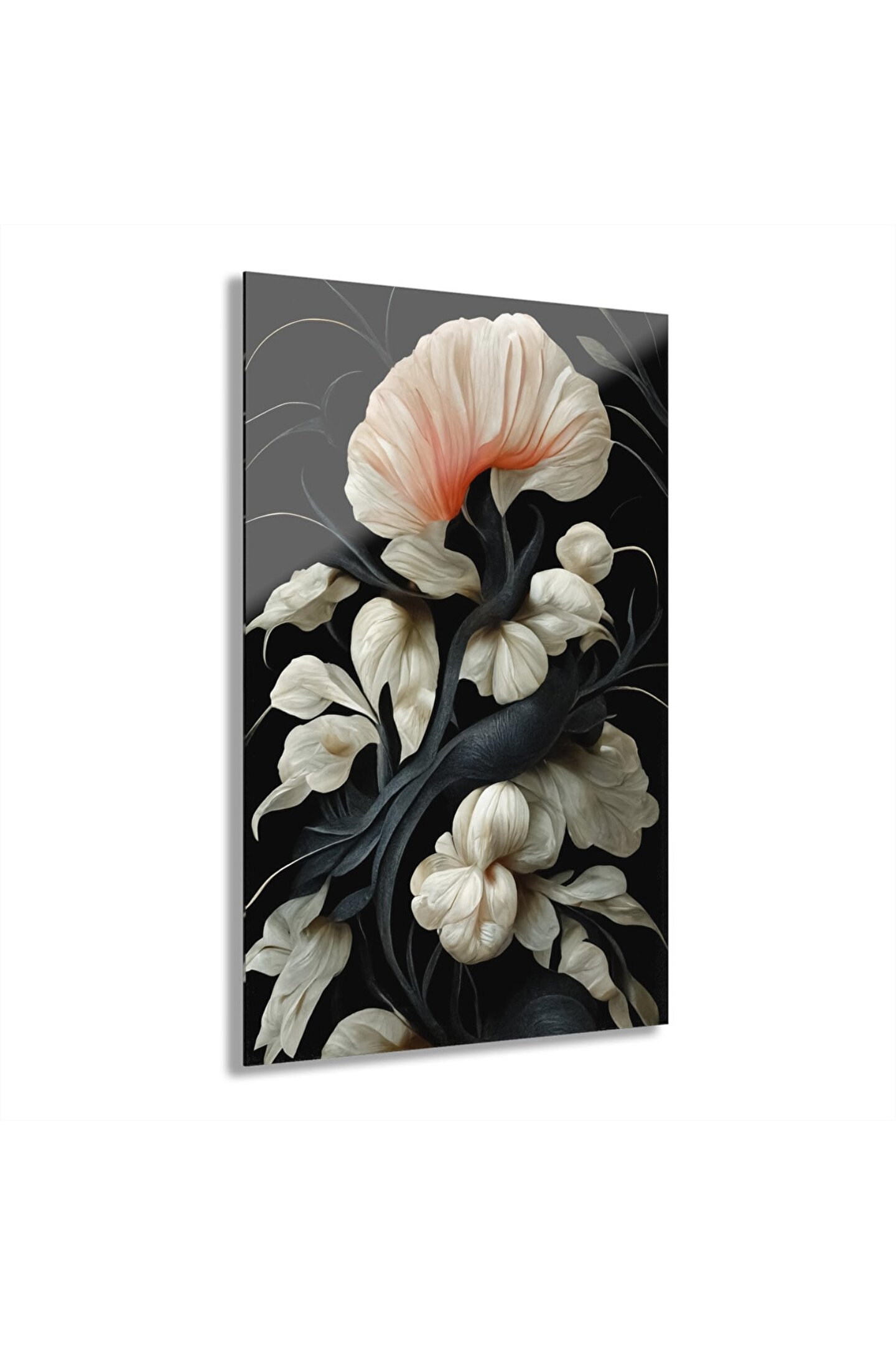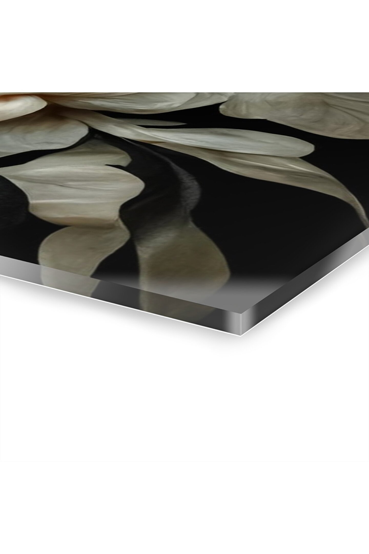LEYLASER Beyaz Çiçekler Cam Tablo Duvar Dekoru