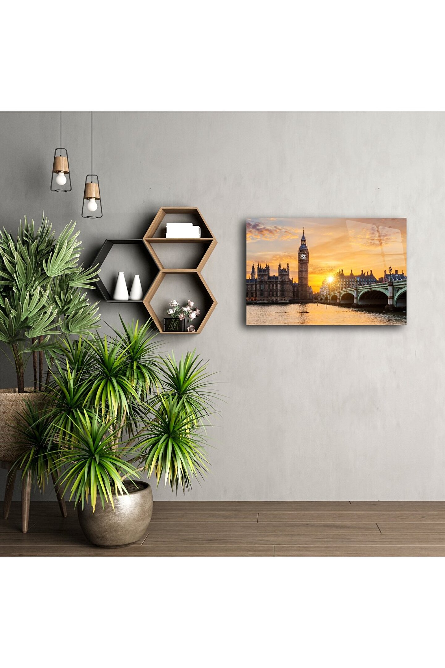 LEYLASER Big Ben Londra Gün Batımı Manzaralı Cam Tablo