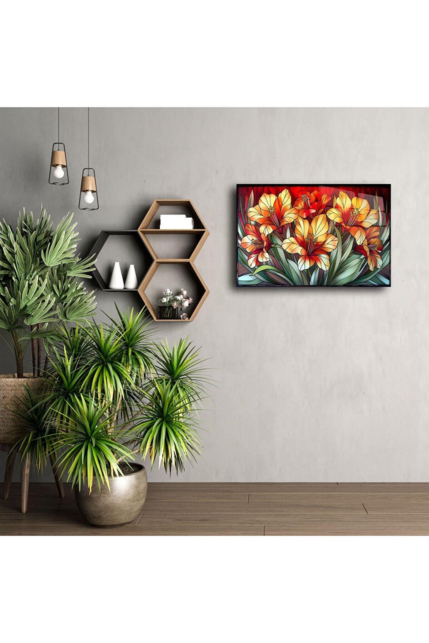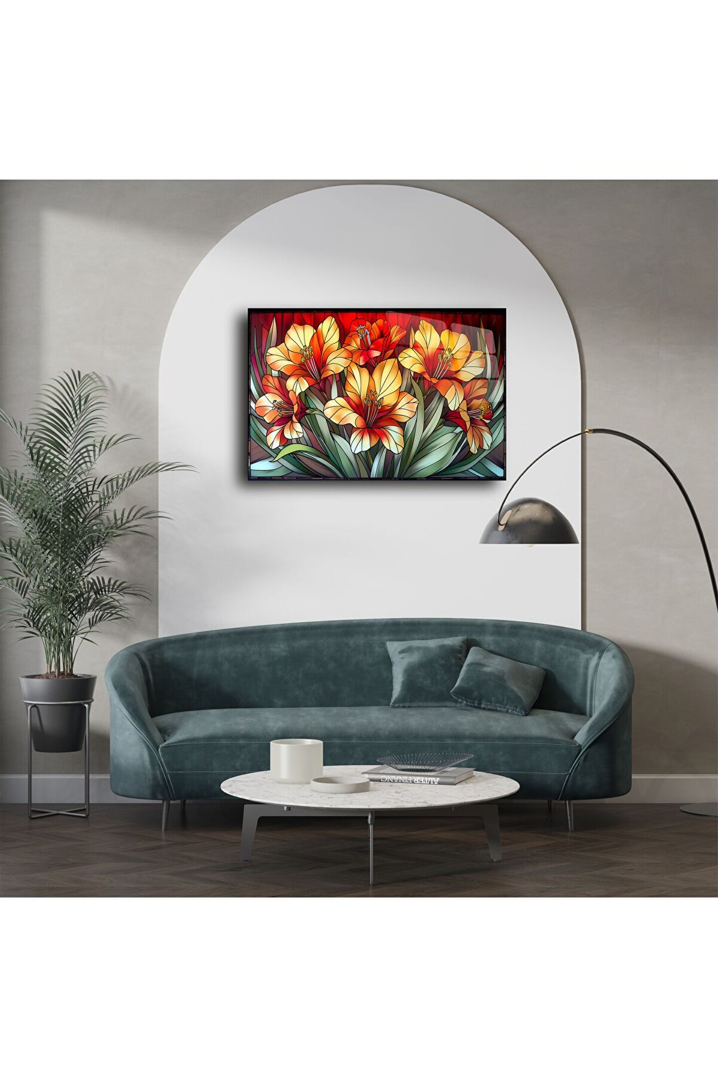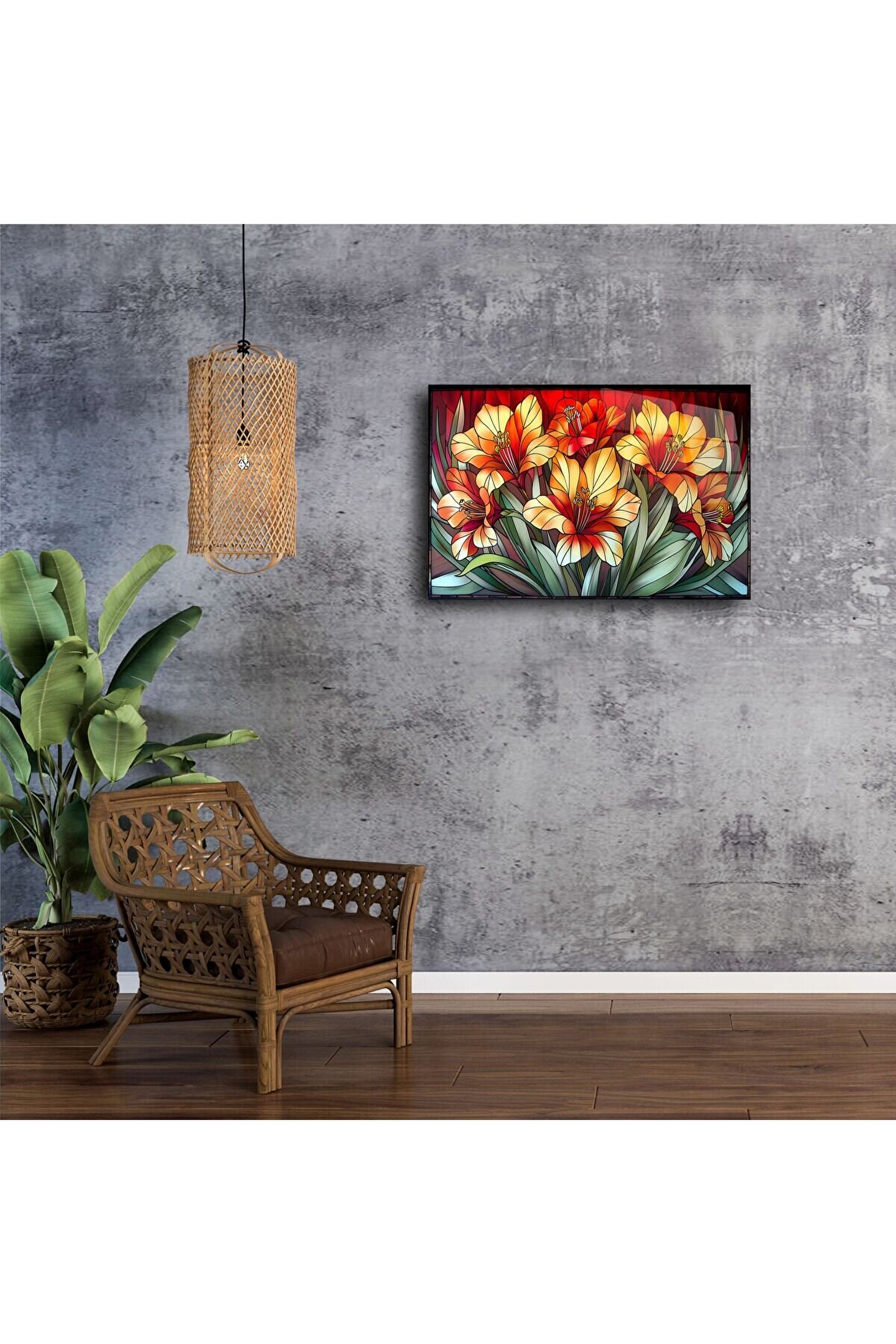 LEYLASER Cam Tablo Çiçek Desenli Duvar Sanatı