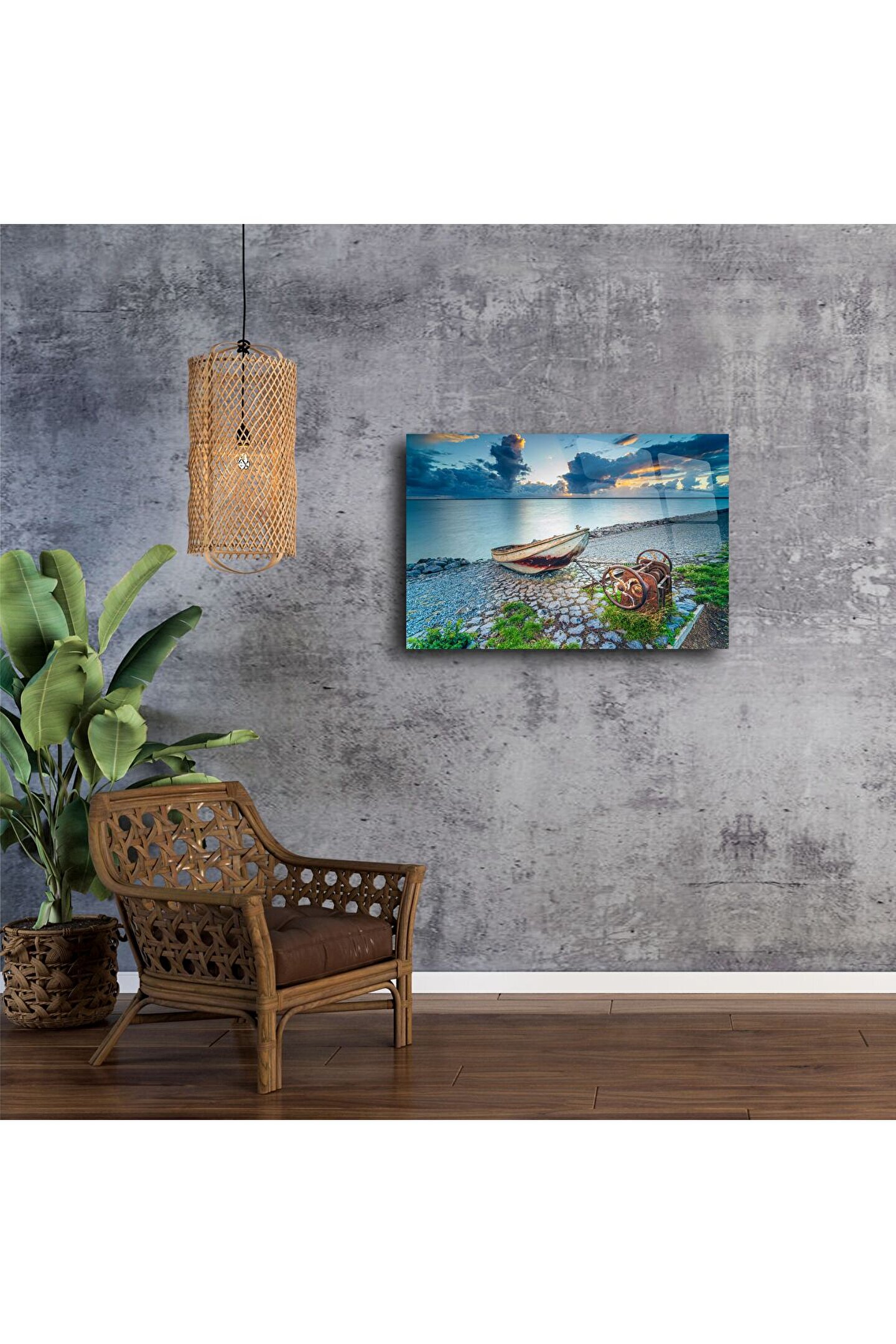 Doğanın huzur verici tonlarını yansıtan bu çarpıcı cam tablo, paslanmış kayık ve gökyüzünü delen bulutlarla dolu dramatik bir günbatımını gözler önüne seriyor. Kristal netliğindeki temperli cam yüzey üzerine yüksek çözünürlükte basılan bu eser, modern yaşam alanlarına sofistike bir karakter katar. Kayalık sahil, nostaljik zincir ve sanatsal dokunuşlarla birleşerek duvarınıza adeta bir hikâye fısıldar.