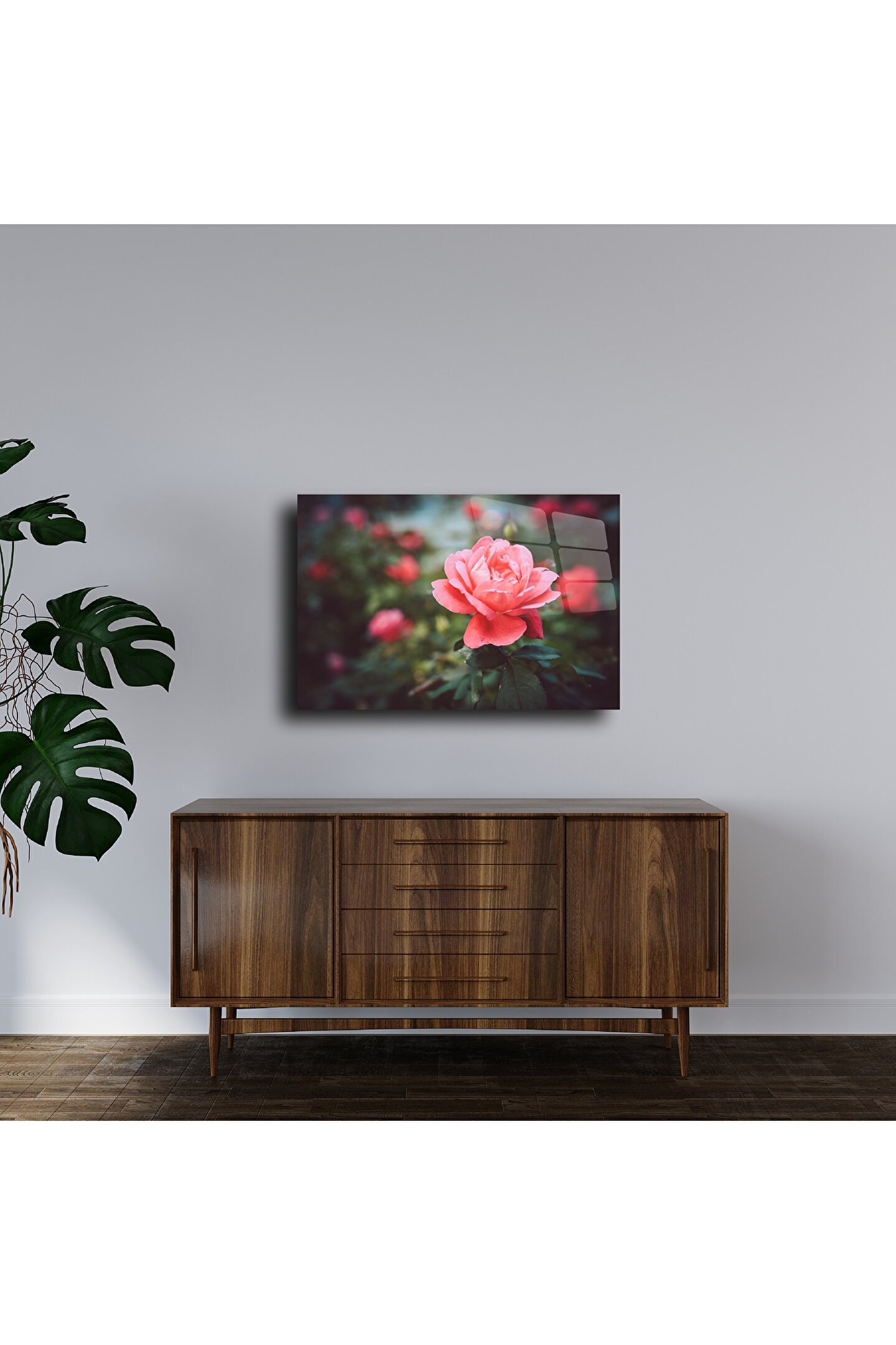 Bu zarif Cam Tablo, pembe gülün doğallığını ve romantizmini duvarlarınıza taşıyor. Gerçekçi detaylarla işlenmiş çiçek fotoğrafı, temperli cam üzerine yüksek çözünürlüklü olarak basılmıştır ve ışıkla buluştuğunda etkileyici bir parıltı sunar.