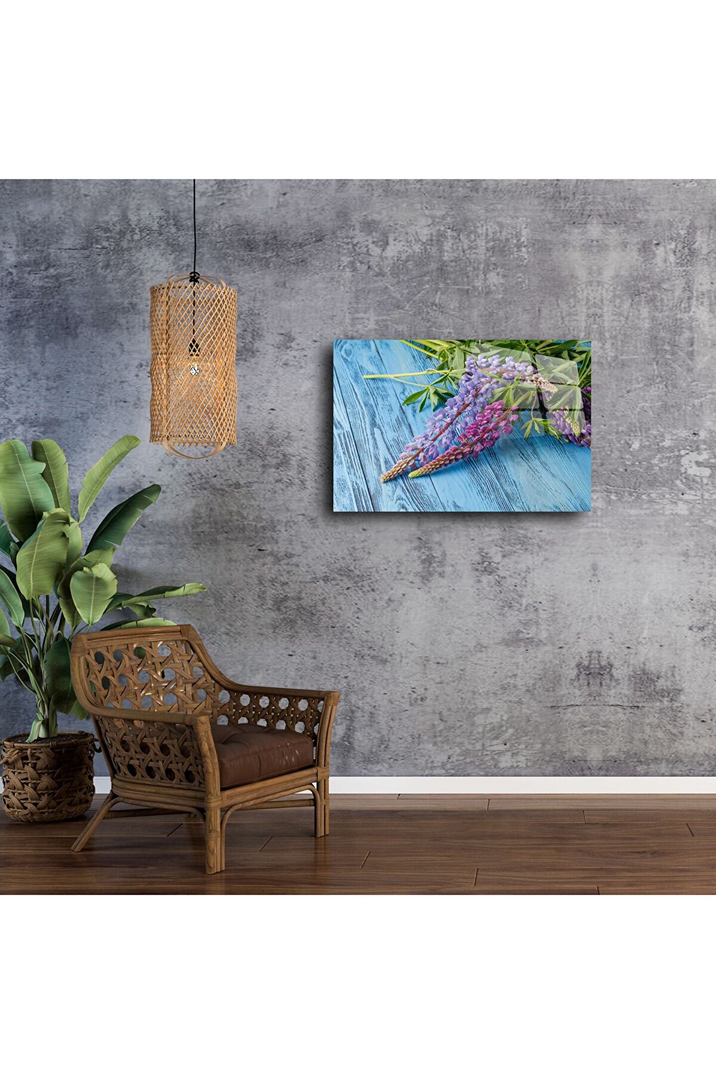 Doğanın huzurunu ve pastel romantizmini evinize taşıyan bu cam tablo, mor ve mavi tonlarında zarif lupin çiçeklerini canlı renkler ve parlak cam yüzeyle buluşturur. Kristal netliğinde yüksek çözünürlüklü baskısı ve ışığı yansıtan modern cam yüzeyiyle mekânınıza ferah, zarif bir atmosfer katar. Yatak odası, salon veya ofis duvarına şıklık katmak isteyenler için mükemmel seçim.