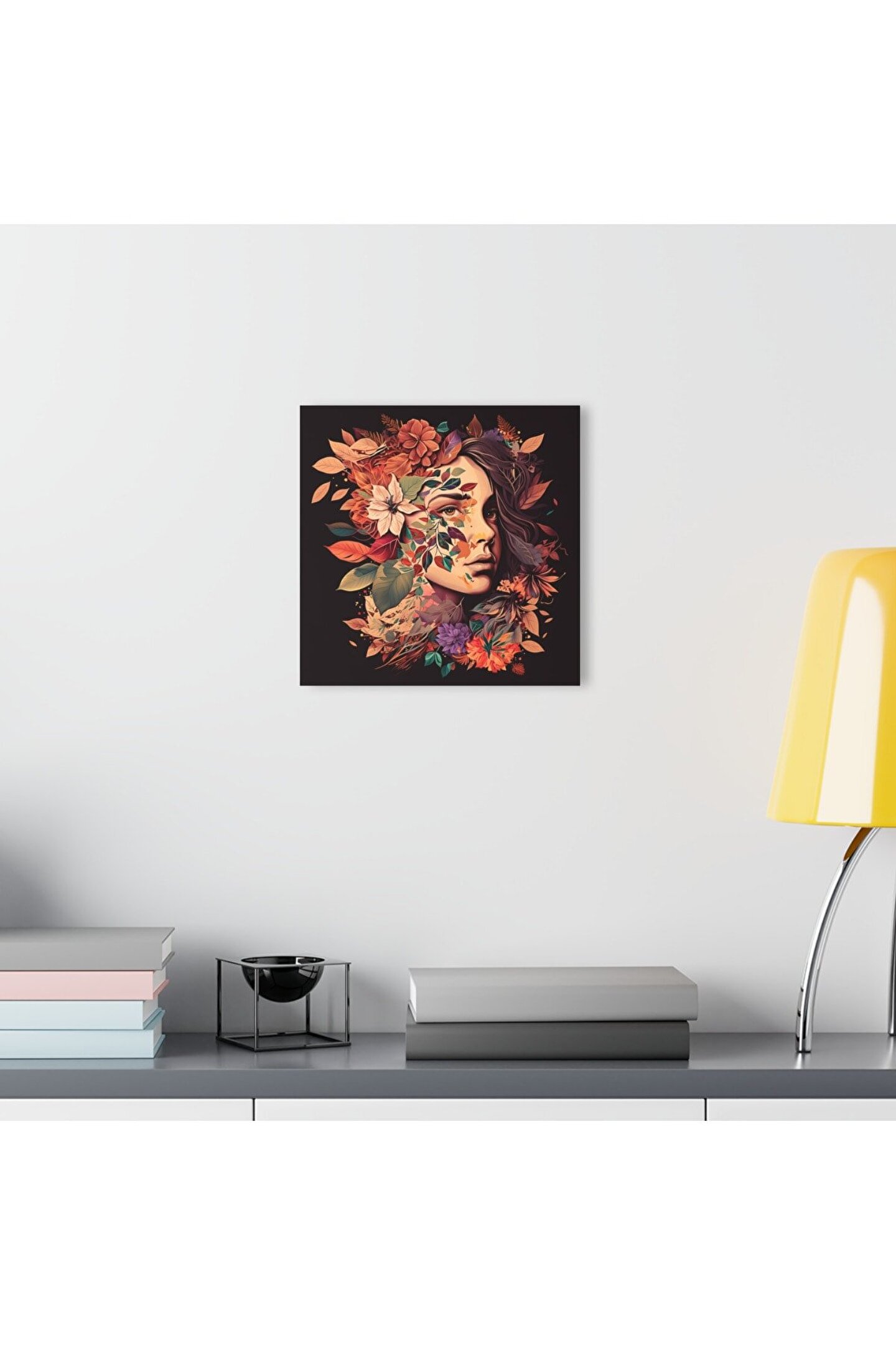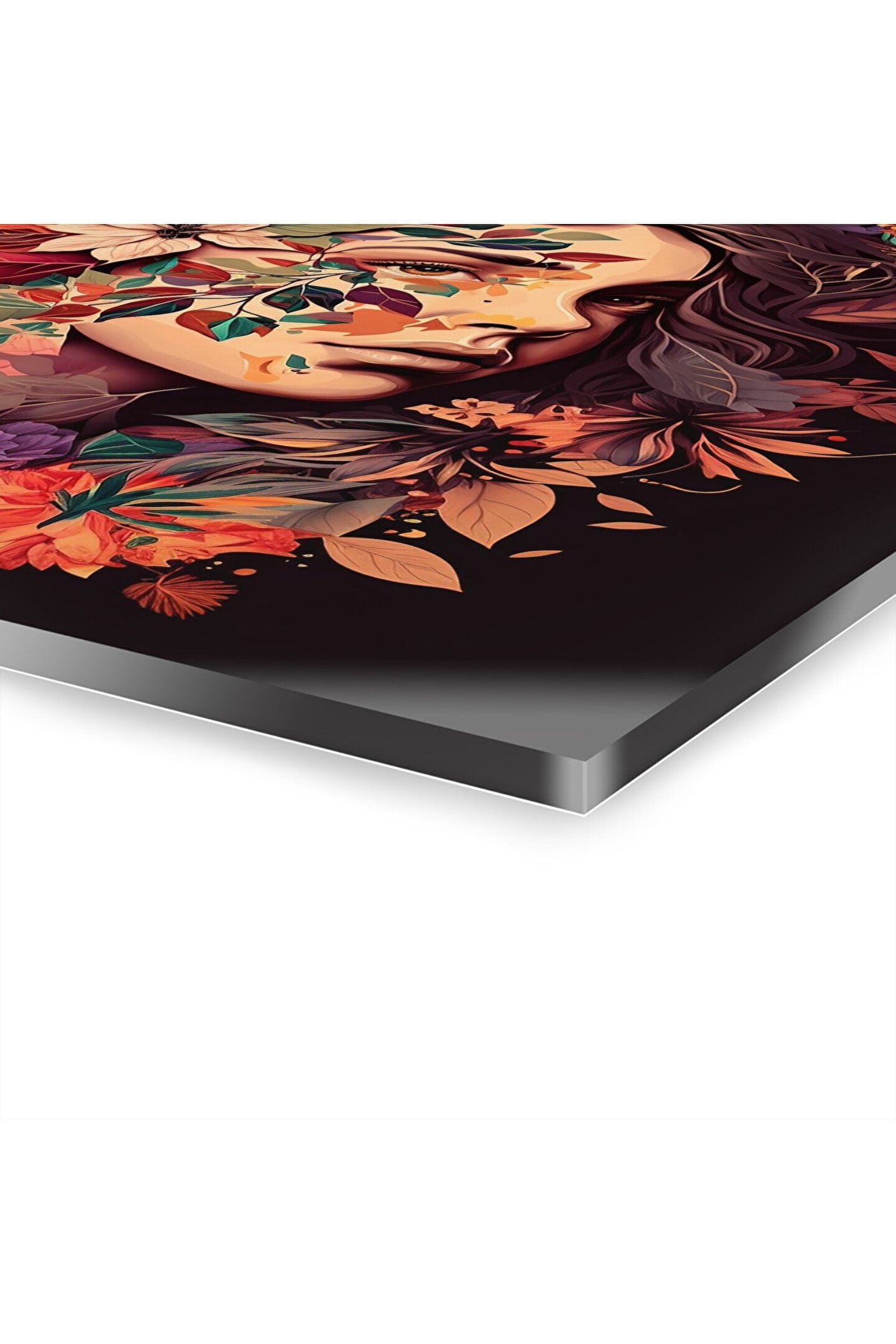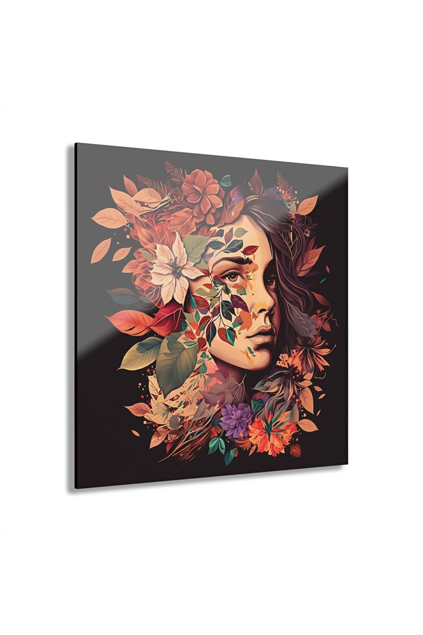 LEYLASER Çiçekli Kız Cam Tablo Duvar Dekoru model 1