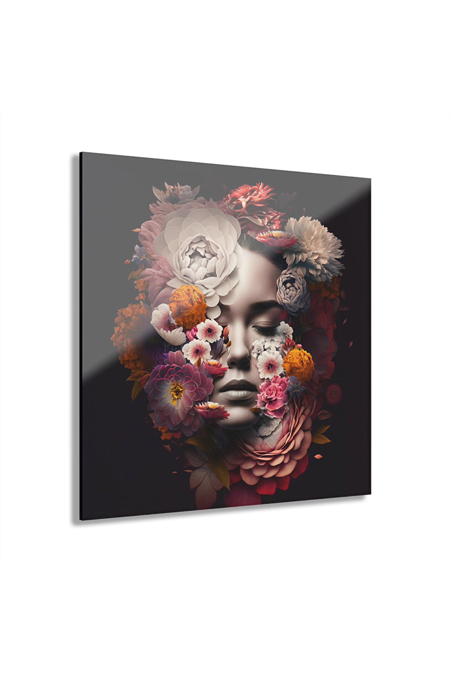 LEYLASER Çiçekli Kız Cam Tablo Duvar Dekoru model 2