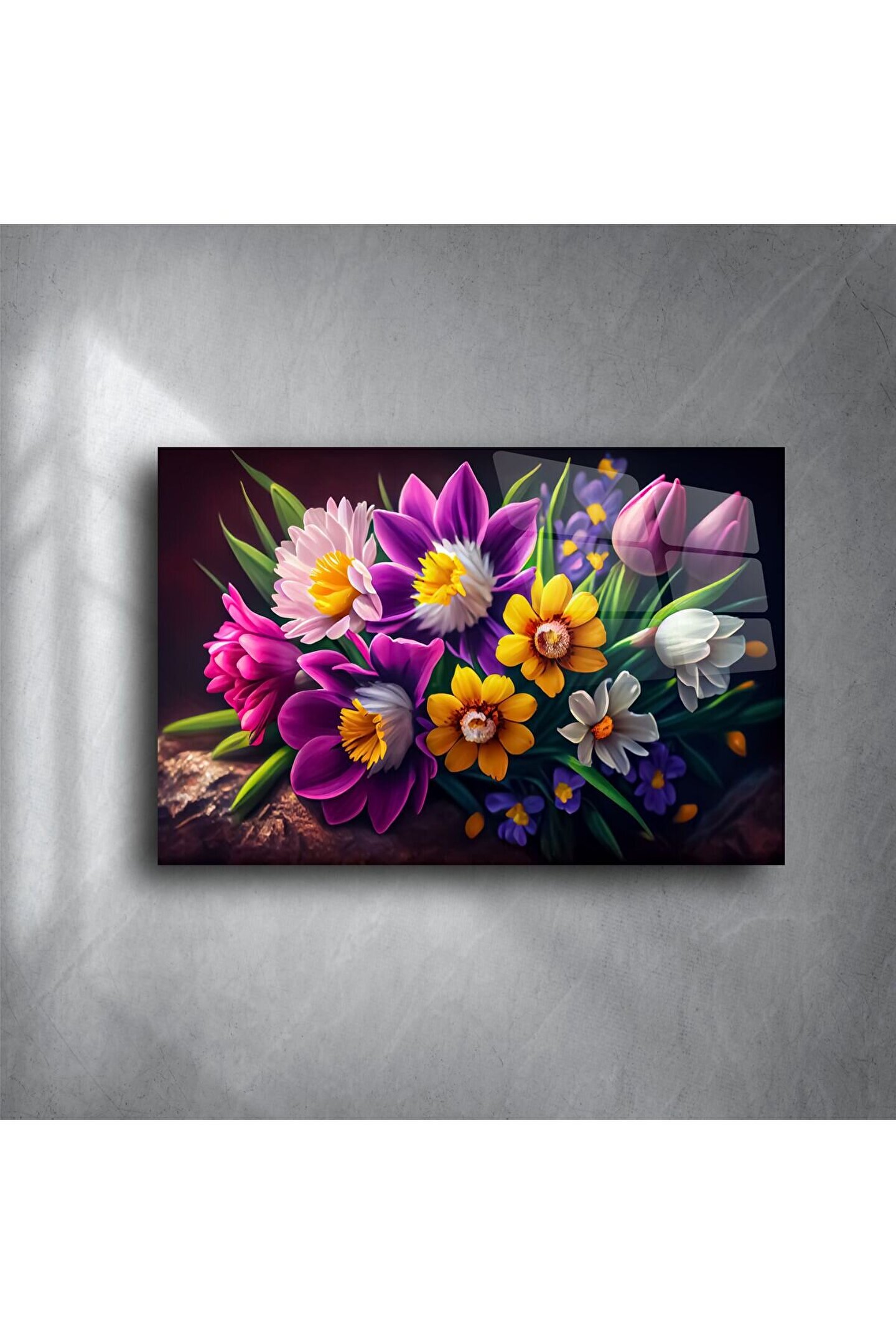 LEYLASER Çok Renkli Bahar Çiçekleri Cam Tablo