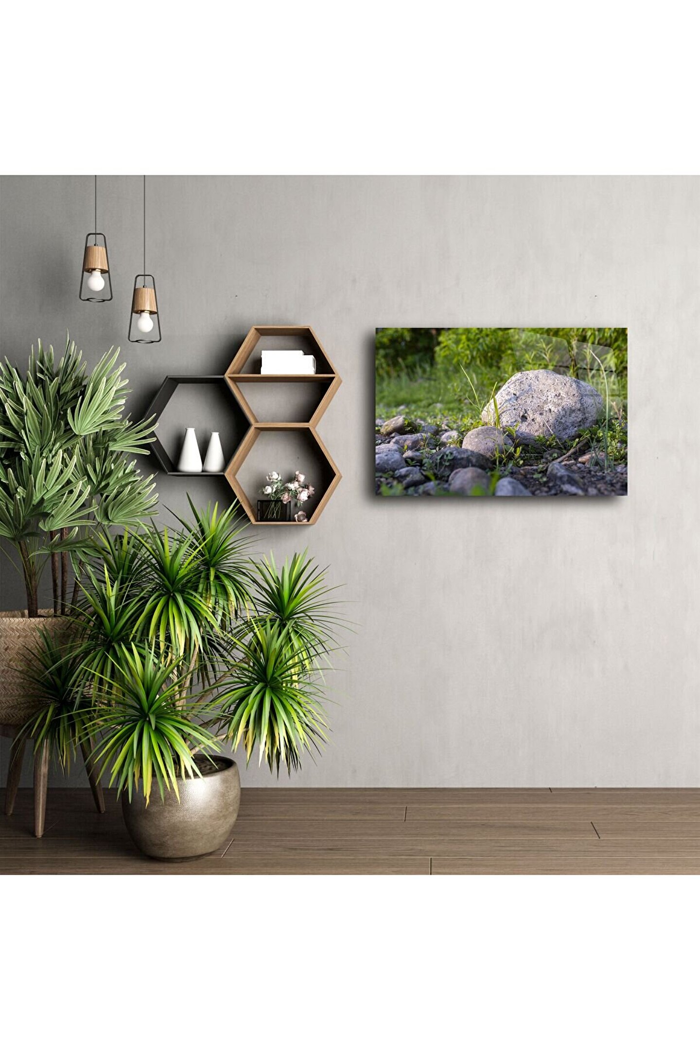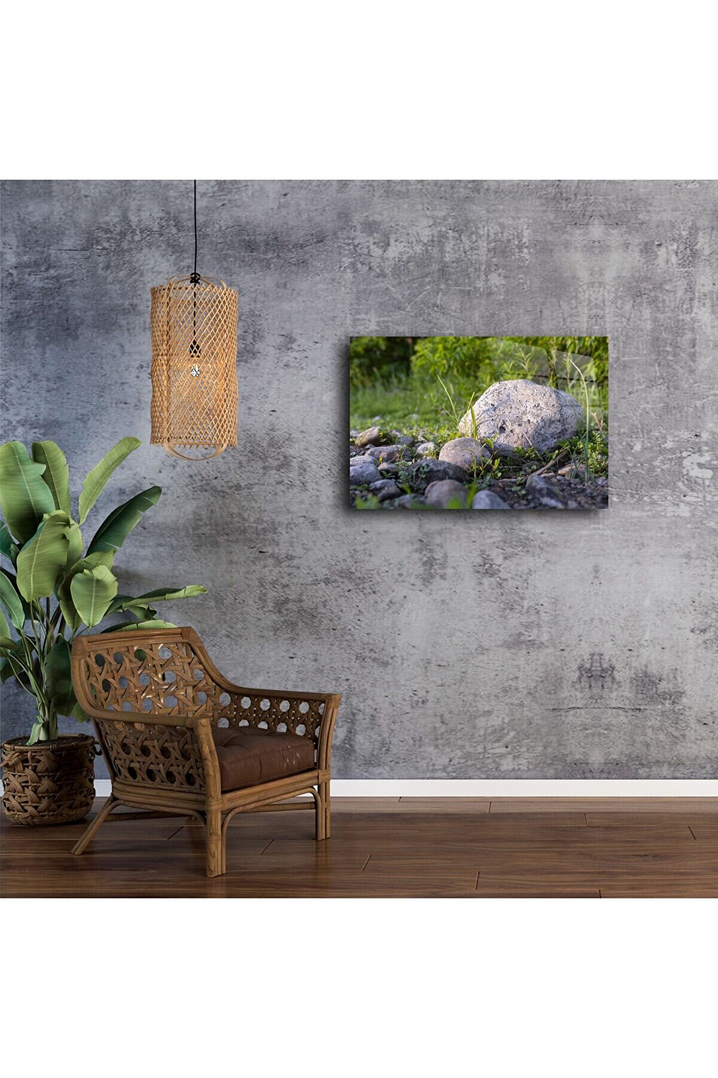 Doğal taşların sakinleştirici dokusunu evinize taşıyın. Bu meditasyon ruhlu dijital duvar sanatı, doğayla olan bağınızı güçlendirerek yaşam alanlarınıza huzur katar. Minimalist rustik tarzı ve yumuşak toprak tonlarıyla dikkat çeken bu görsel, evin her köşesine zamansız bir zarafet katmak için tasarlandı.