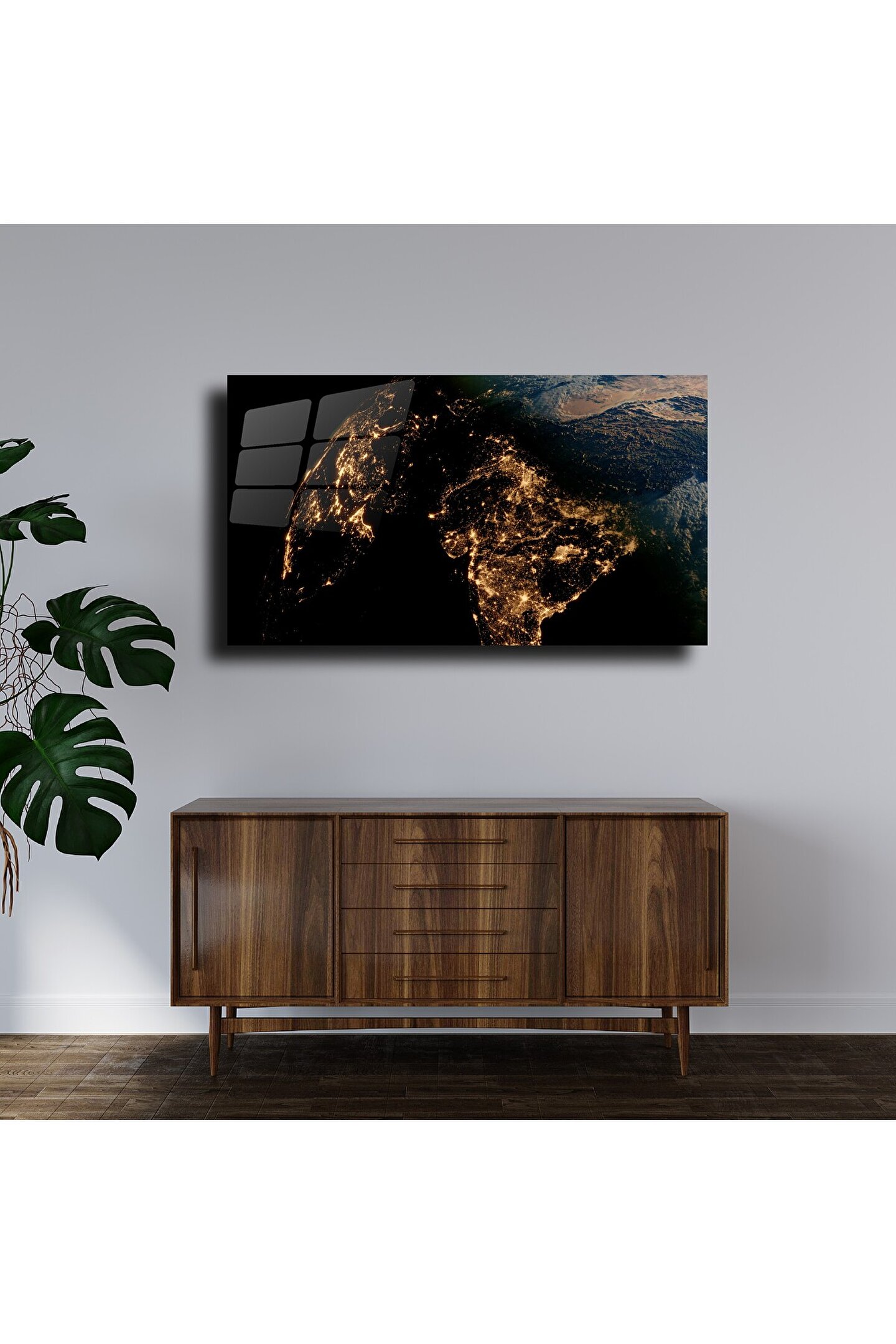 LEYLASER Dünya Temalı Cam Tablo Duvar Dekoru 1