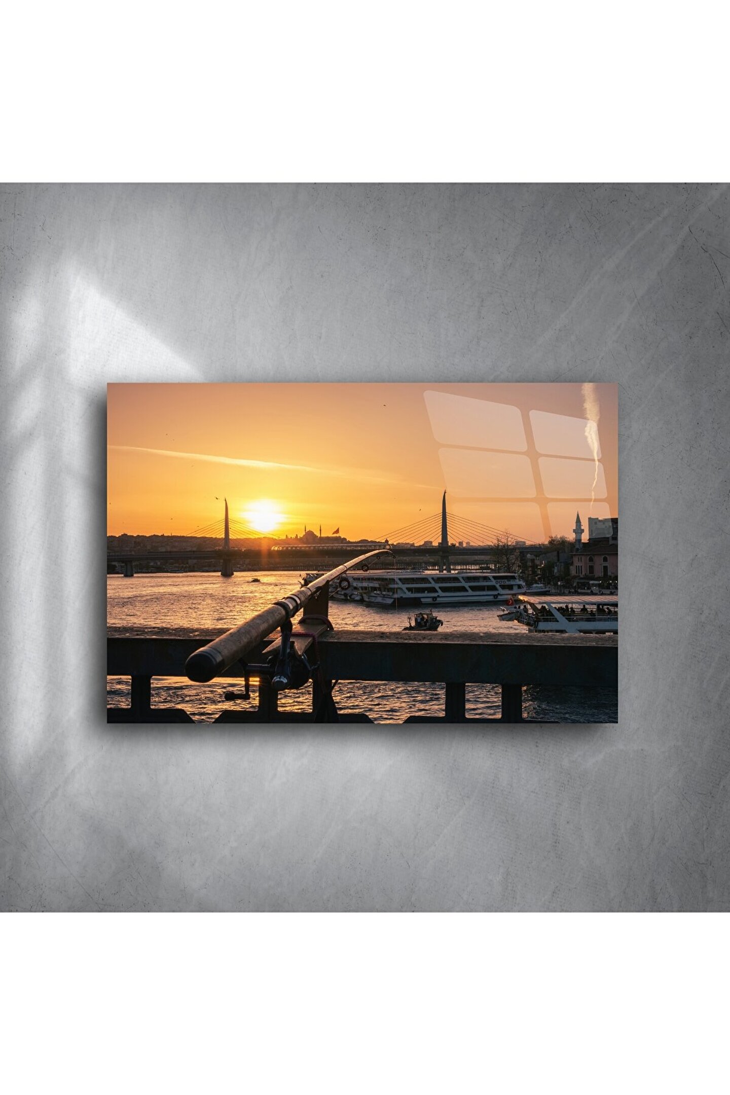 LEYLASER Galata Köprüsü Gün Batımı Cam Duvar Tablosu
