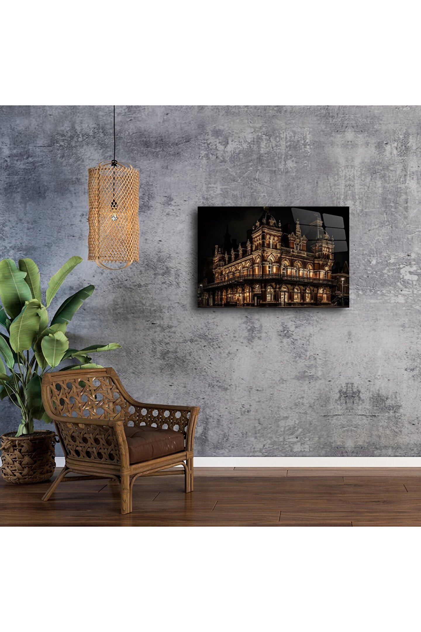 LEYLASER Gece Aydınlatmalı Tarihi Bina Cam Tablo