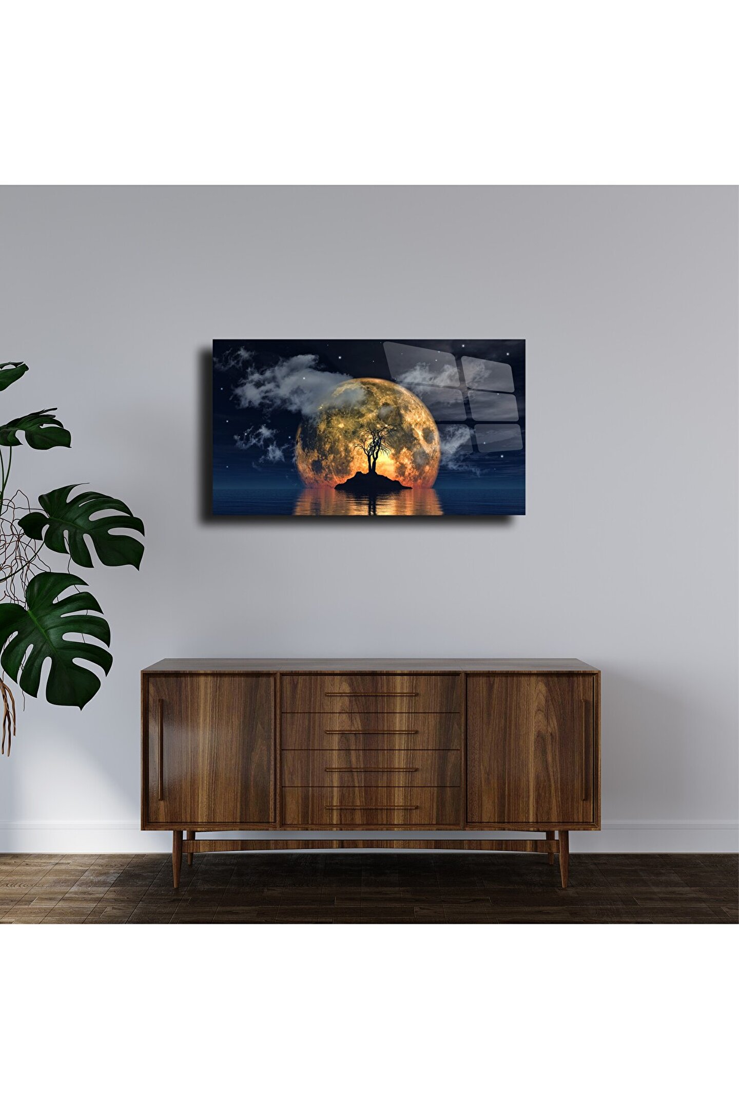 LEYLASER Gece Manzarası Cam Tablo Duvar Dekoru