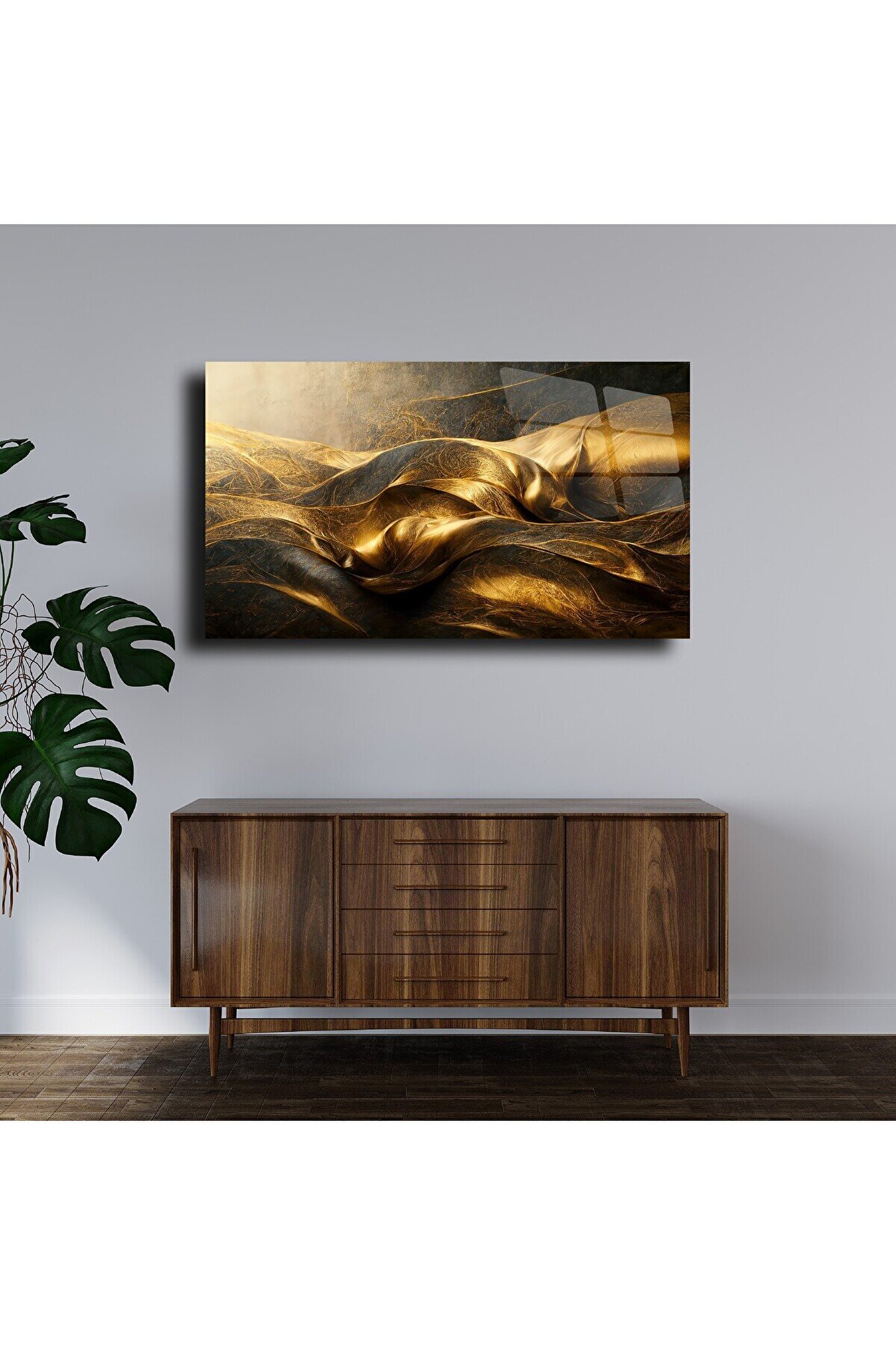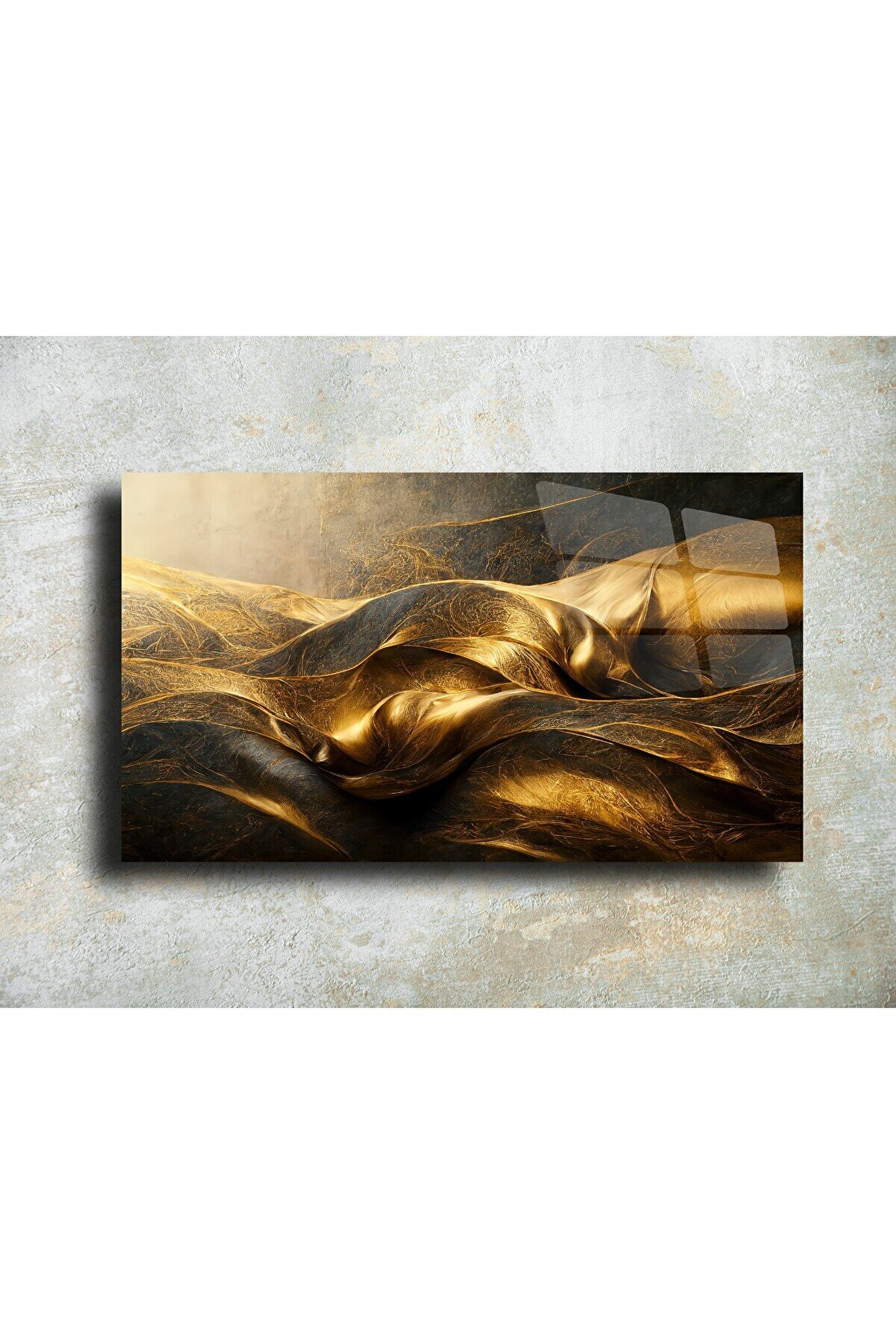 LEYLASER Gold Siyah Karışık Desen Cam Tablo Duvar Dekoru